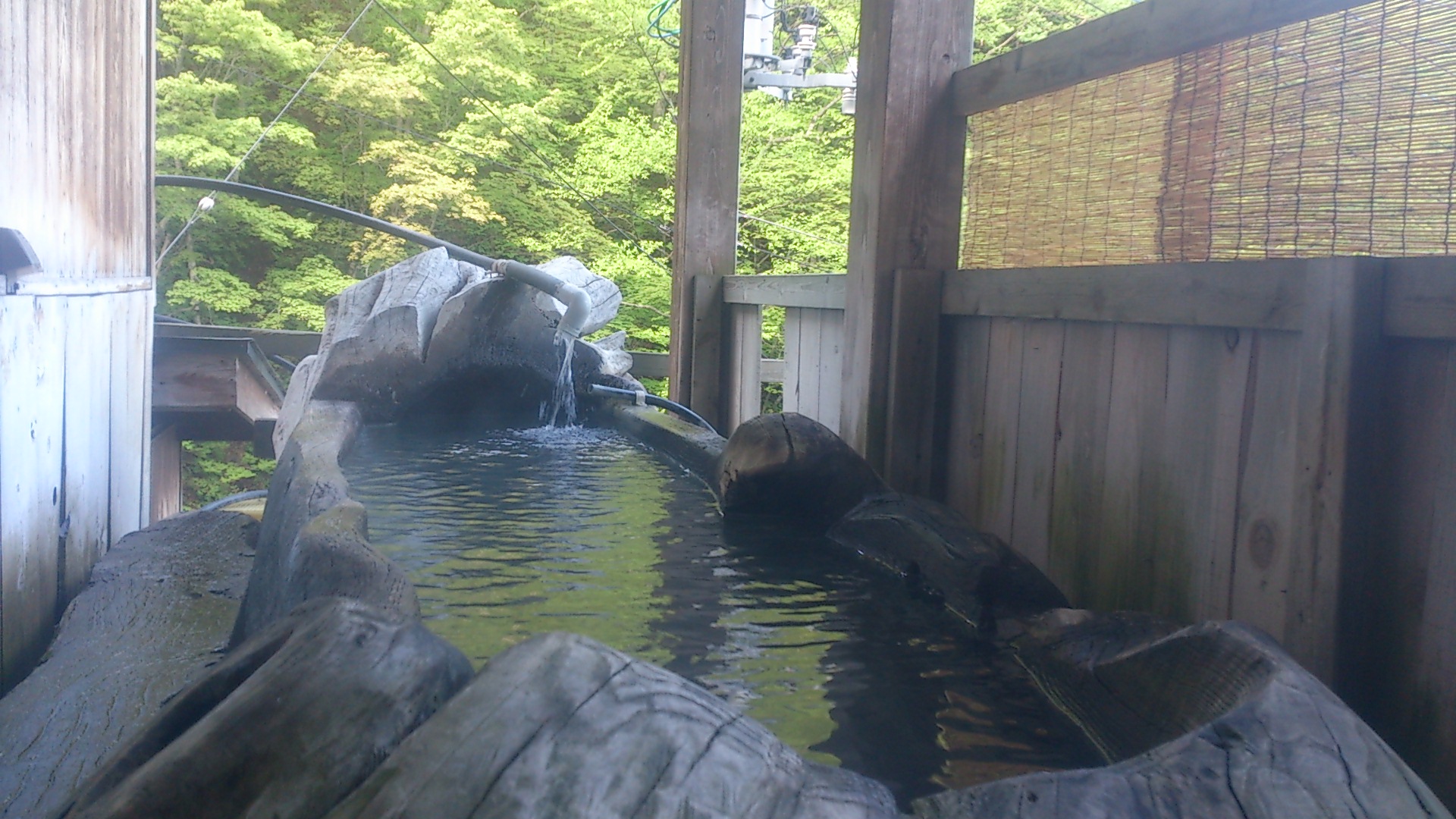 続いて木をくりぬいたお風呂へ。いい湯です。