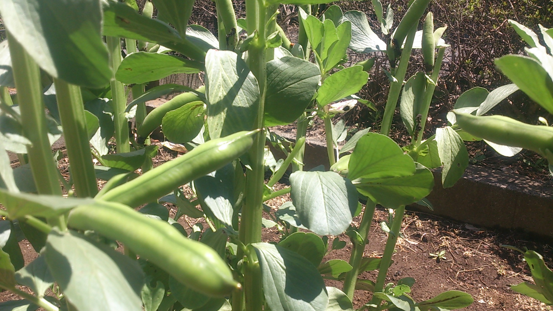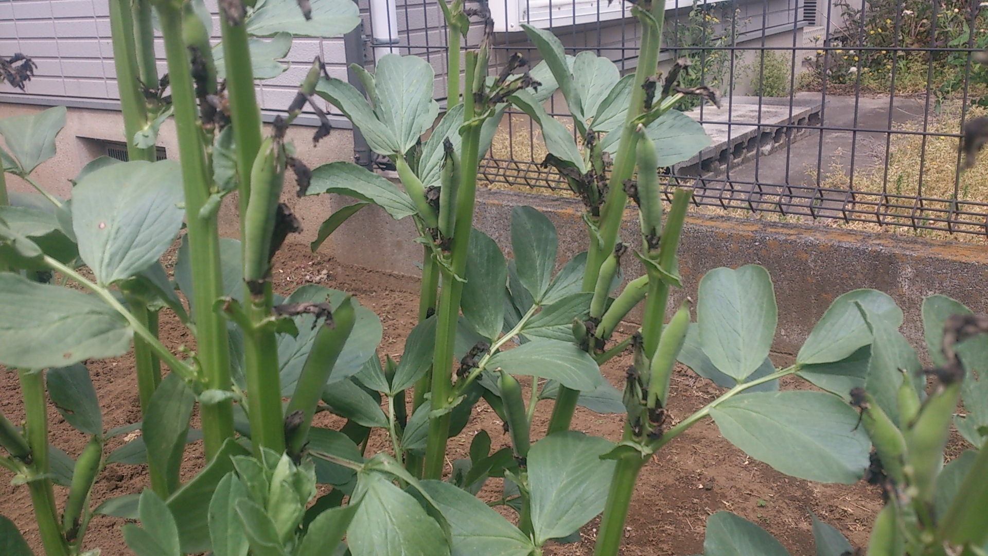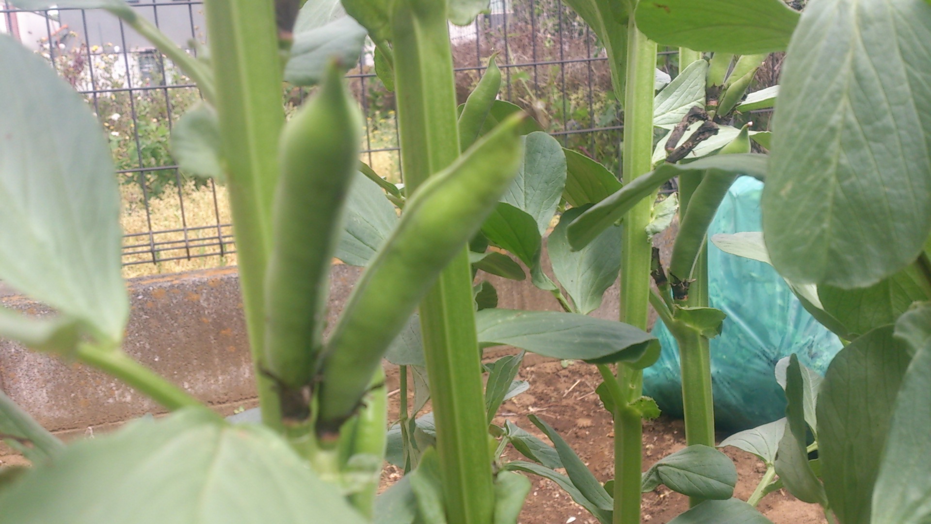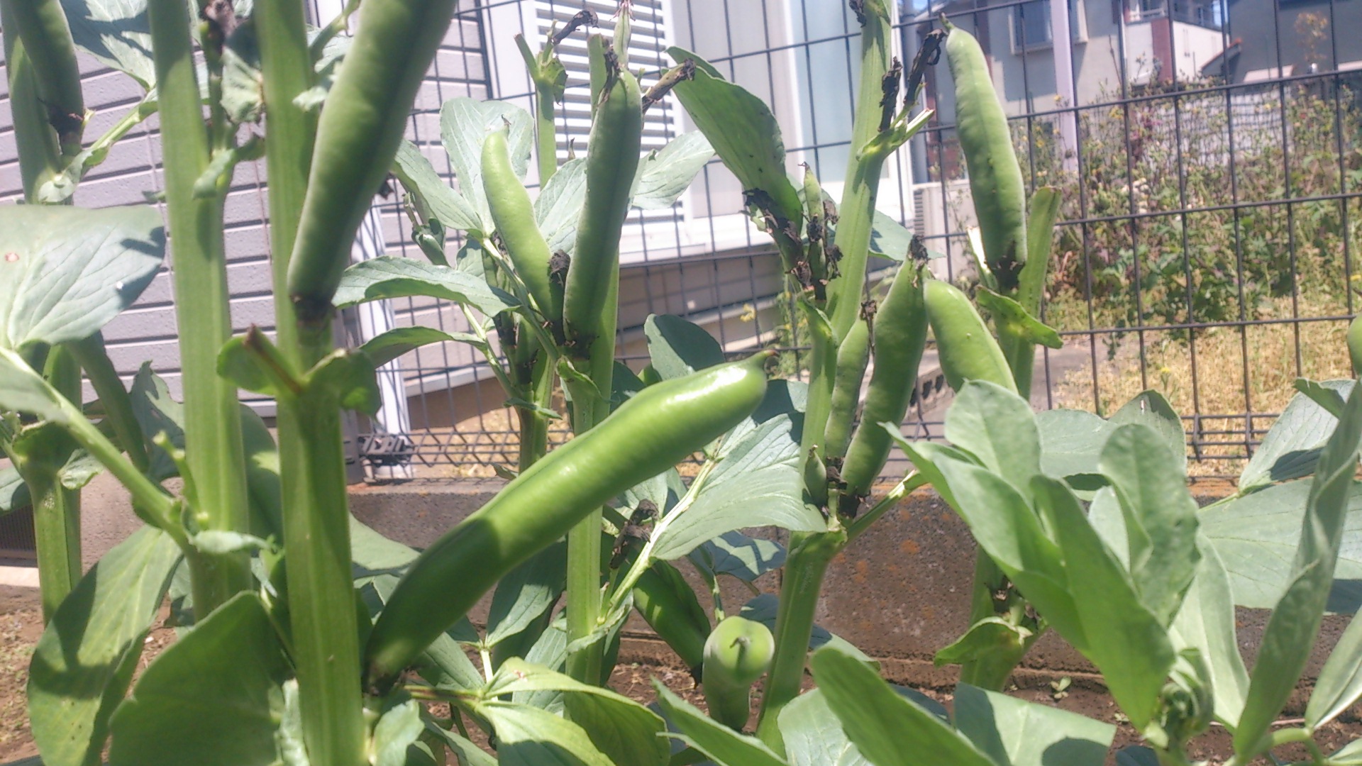 だいぶ大きくなりました。10㎝を超える莢もあります。しかも鈴なり状態です。ソラマメは莢の中の実が充実してくると、垂れ下がり、下を向きます。そうなると収穫となります。大きなものはもうそろそろといった感じでしょうか。楽しみですねっ♪