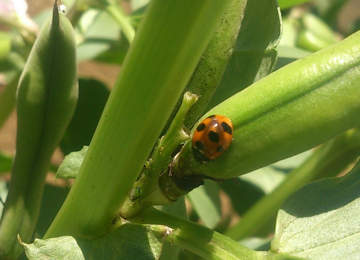 おっ~と! 心強い味方が現れました。てんとう虫さんです。憎きアブラムシを捕食してくれています。さぁ、どんどんやっつけてくれっ!!