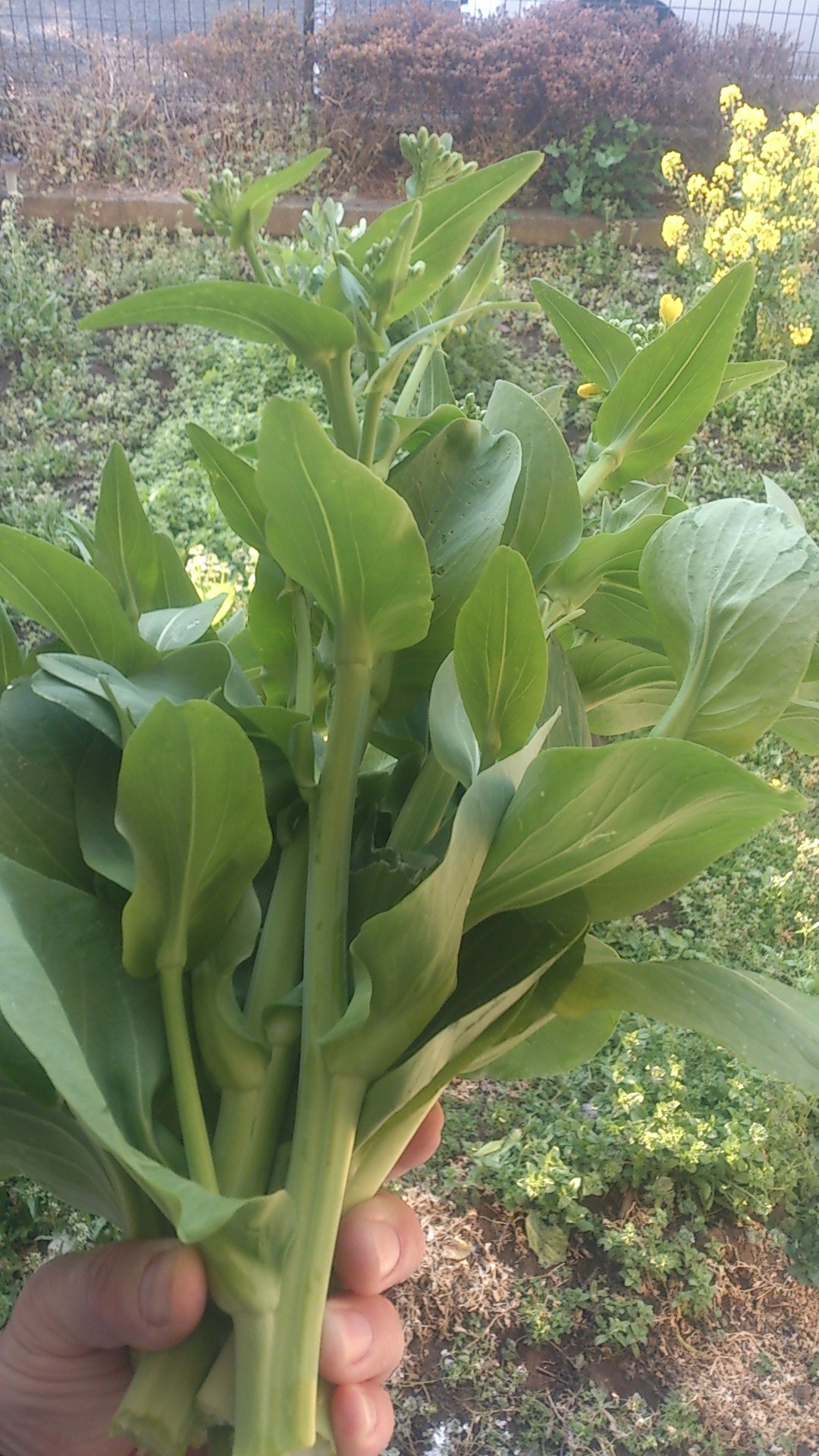 朝一でチンゲン菜花を少しだけ収穫しました。