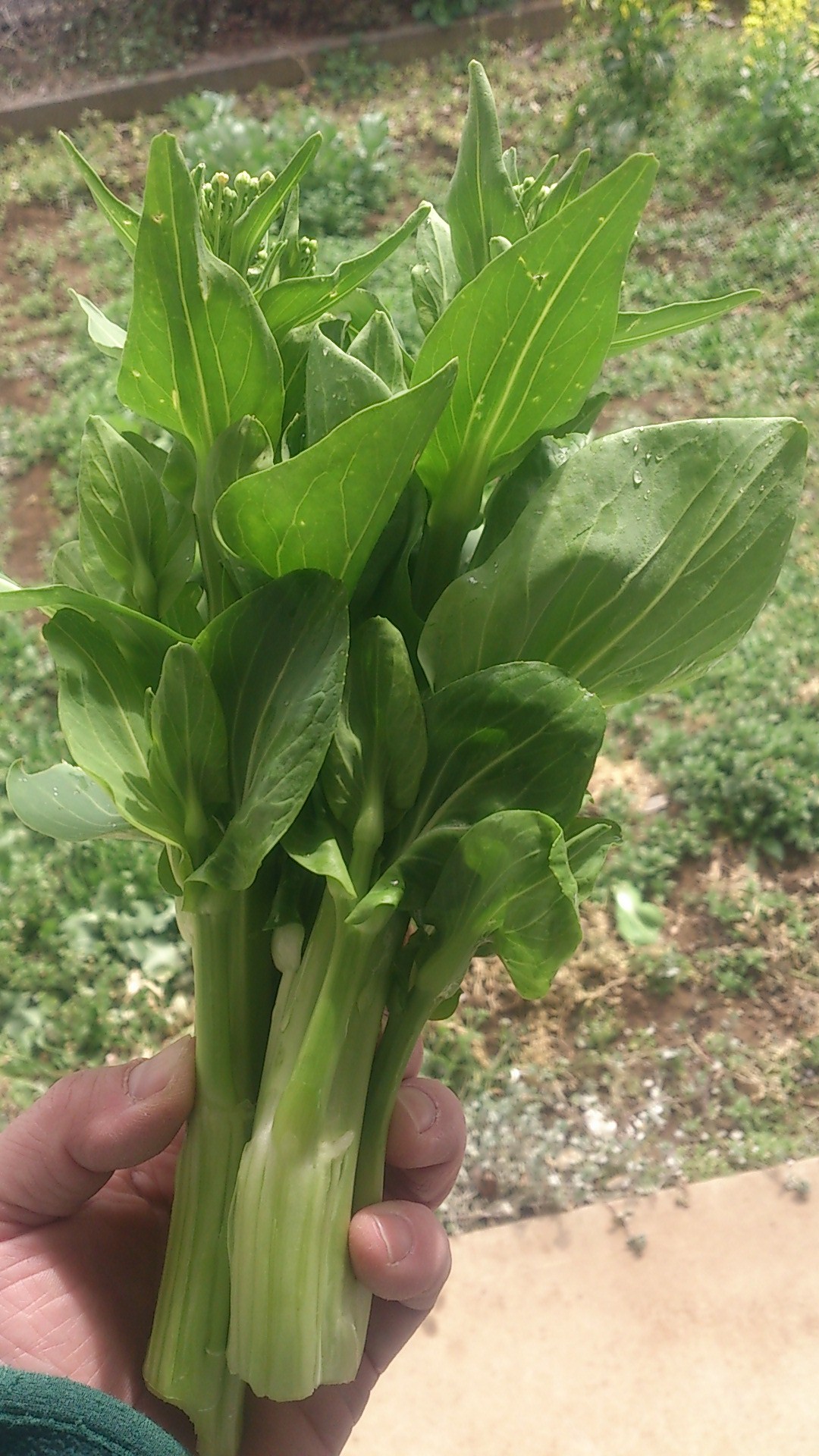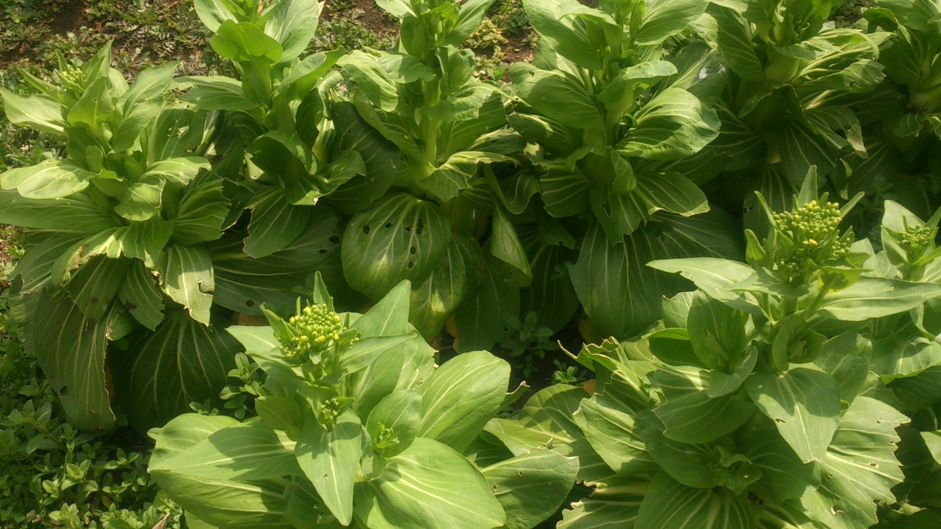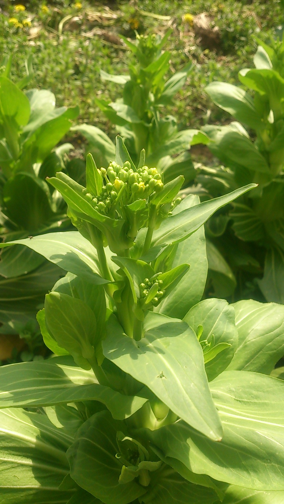 昨年の秋に種を蒔いたチンゲン菜花が初収穫を迎えました。