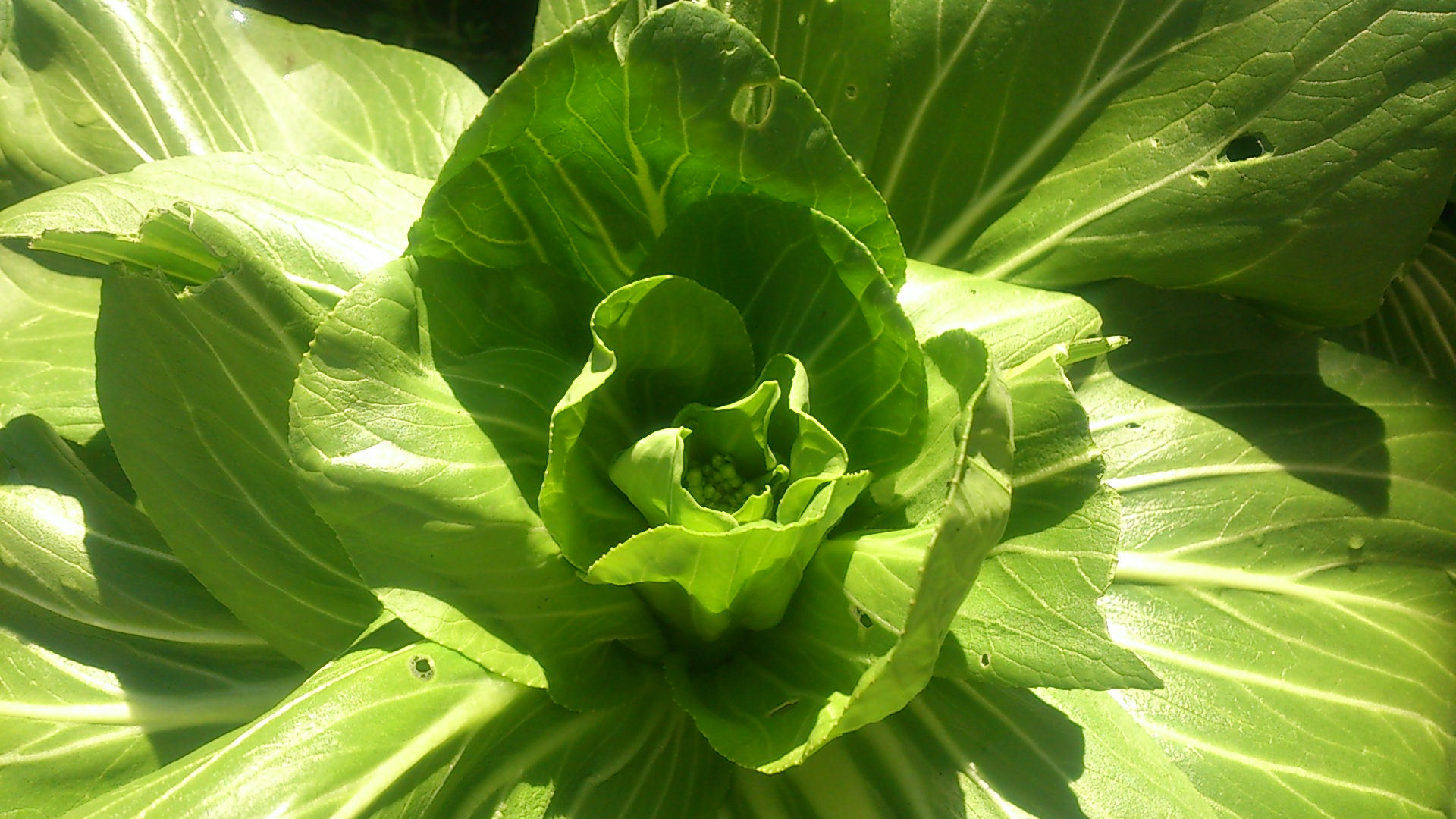一株だけ良く見ると、芽花が出ていました。これがとうだちしたものを食べます。あとひと月くらいでしょうかねっ。