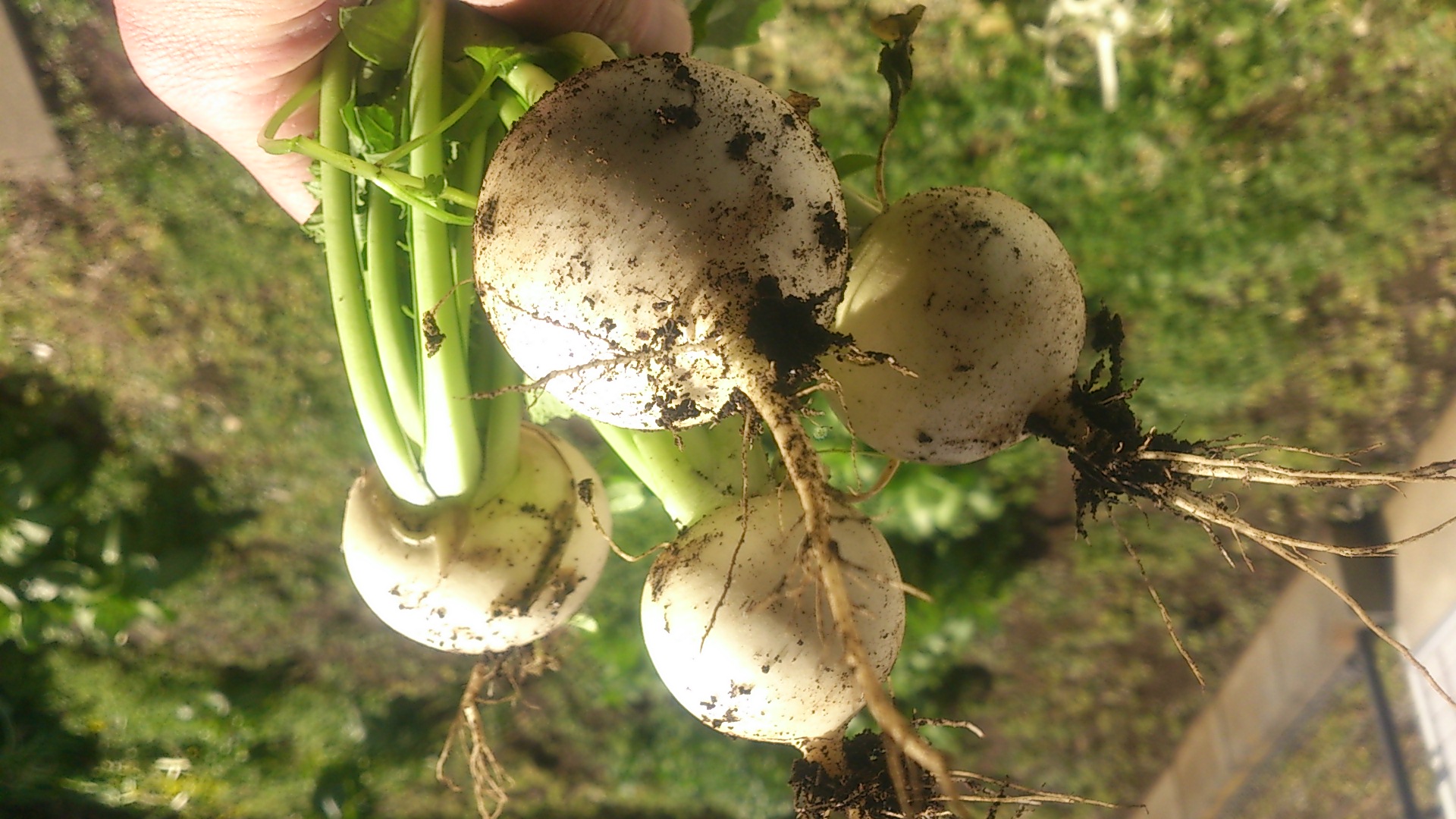 車を車検に出しているあいだに今日も小カブを収穫しました。