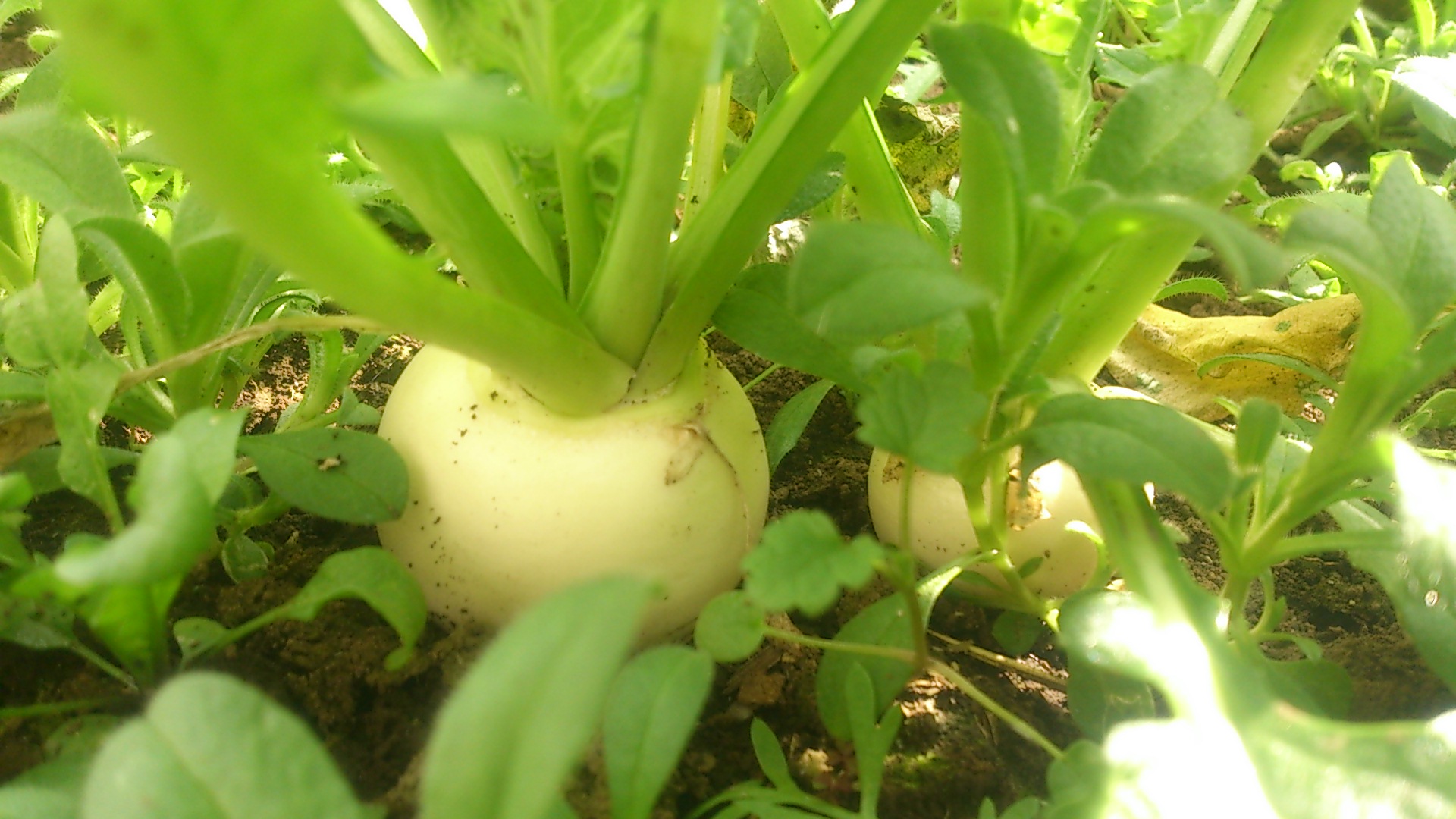 さて、昨年の11月に種を蒔いた小カブですが、試しに収穫してみることにしました。収穫のタイミングがよく分からないのですが、大きめのものは早めに収穫したほうが無難ですので。。。