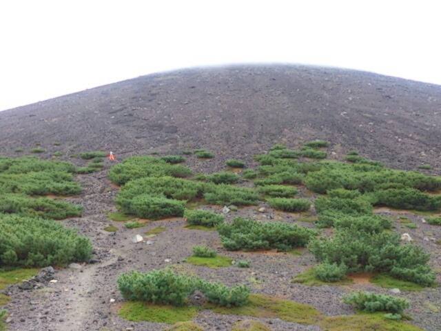 森林限界を超えると阿寒富士の頂上が現れました。このルートは7合目までは雌阿寒岳と共通です。雌阿寒岳へは行ってはいけません。ここから山頂までは距離はたいしたことないのにかなりキツかったです。