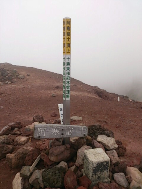 とりあえず阿寒富士に登頂しました。風が寒いです。眺望はほとんどありません。しばらく休んで下山です。