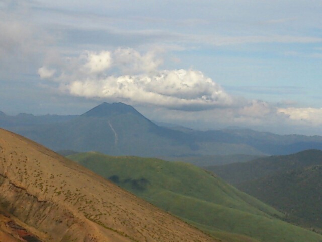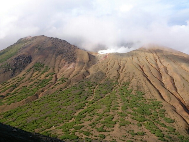 こちらは雄阿寒岳。下山開始後、すぐに山頂付近が晴れてきました。とほっ。