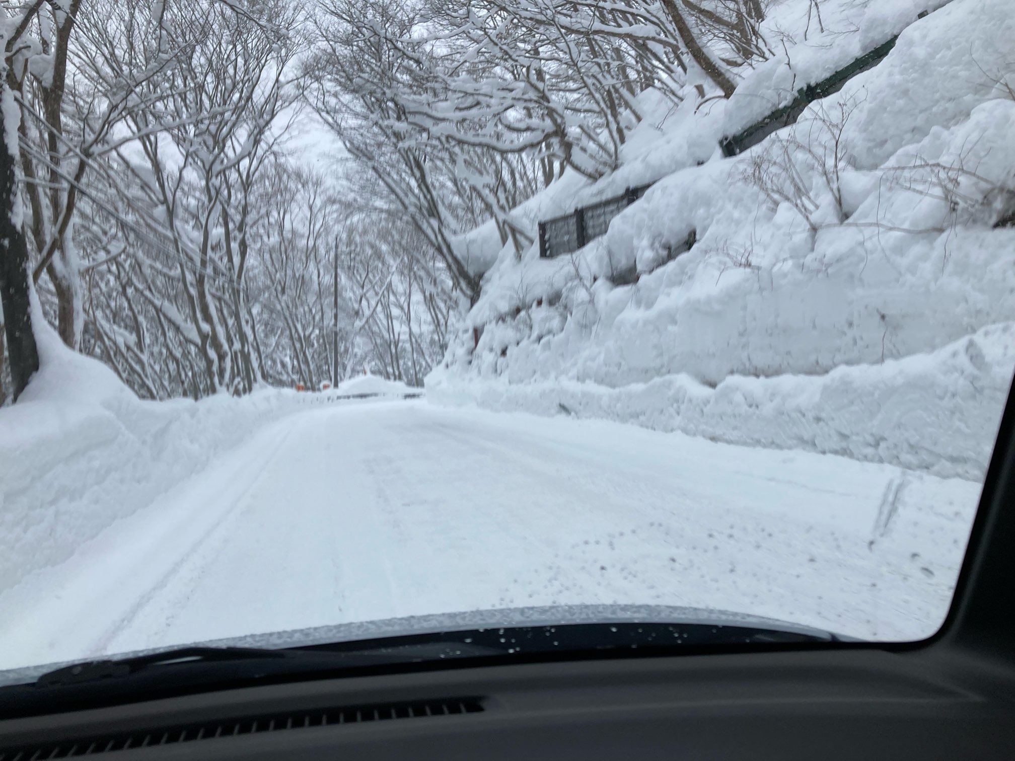 融雪道路を過ぎると道路状況が一変、辺り一面ご覧の通り。