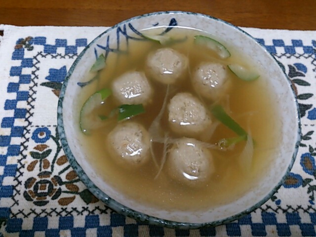 会社のオジサンからネギ(下仁田ネギ風)を頂きました。今日はこれを汁物の具に使ってみました。いわしのつみれ汁ですが、ネギのほうがメインです。