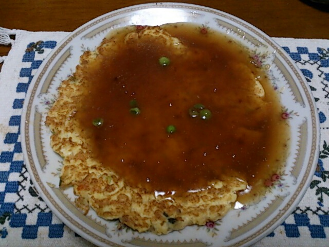 それからかに玉です。手抜きで市販のかに玉の素的なものを使いました。