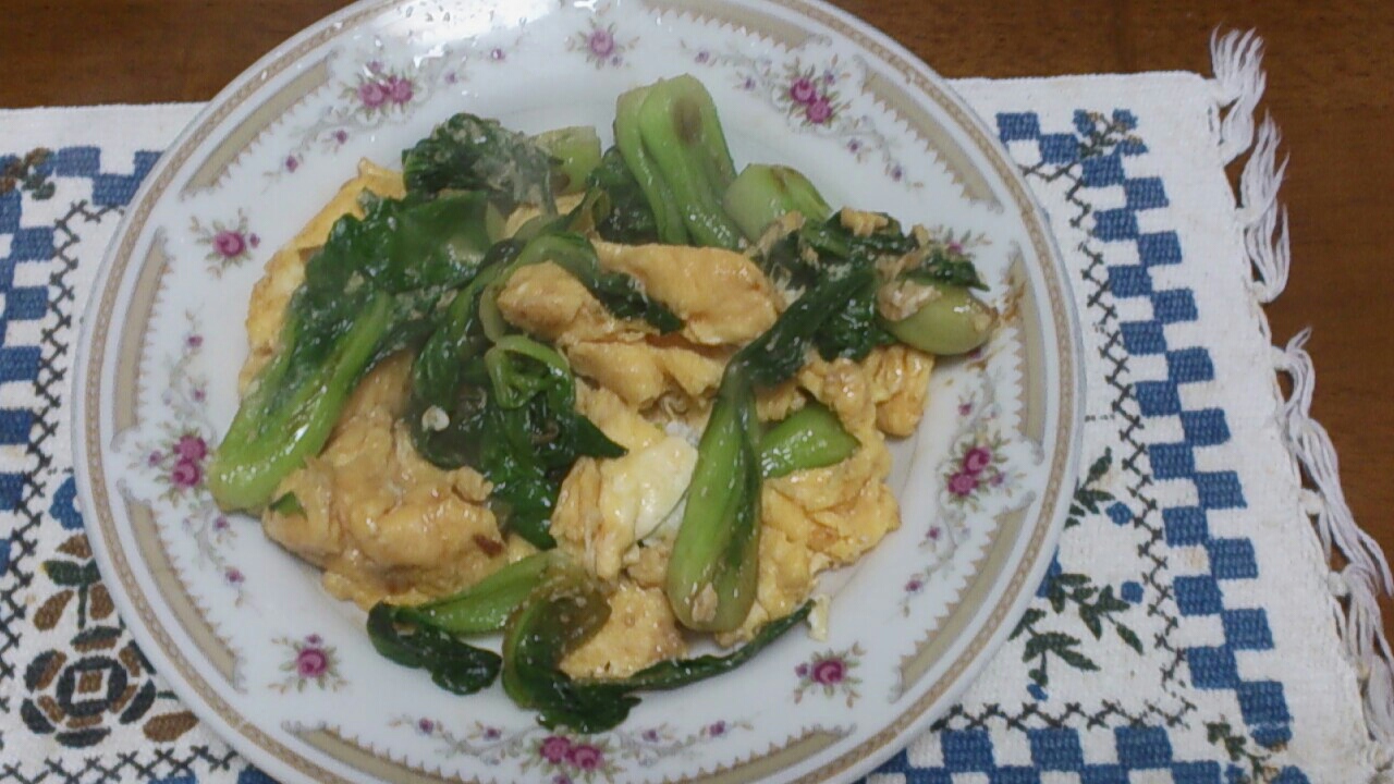 チンゲン菜と玉子のふわふわ炒めです。
