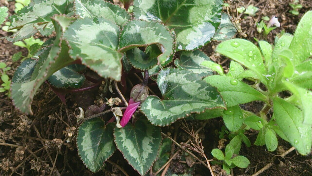 昨日シクラメンを買い、庭に出て野菜を収穫していたとき、ふと雑草置き場に目を向けると、積まれた雑草の脇になんとシクラメンがしっかりと根付いているのを発見しました。おそらく昨年買ったものでしょう。偶然ってスゴイですねっ。