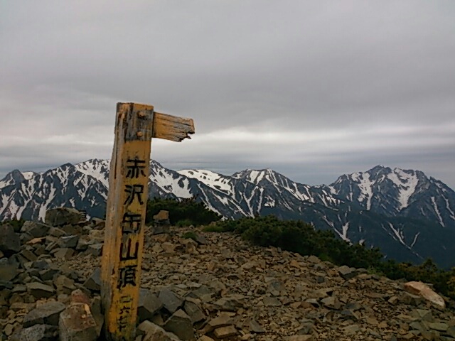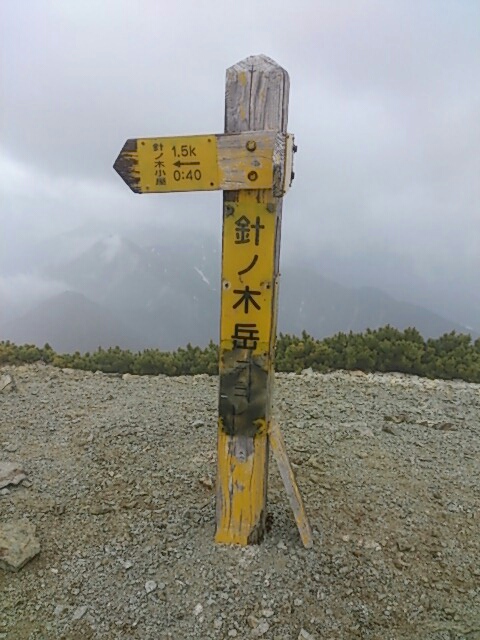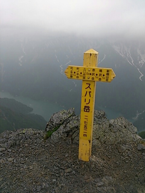 スバリ岳に着きました。かなり体力を消耗してます。既に雨が降ってますが、なんとか視界が利きます。