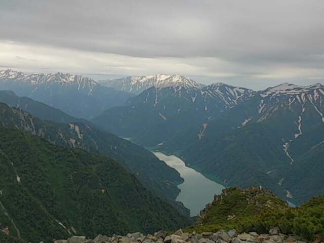 赤沢岳からは黒部湖が俯瞰できます。その向こうには裏銀座の名峰がズラリ。