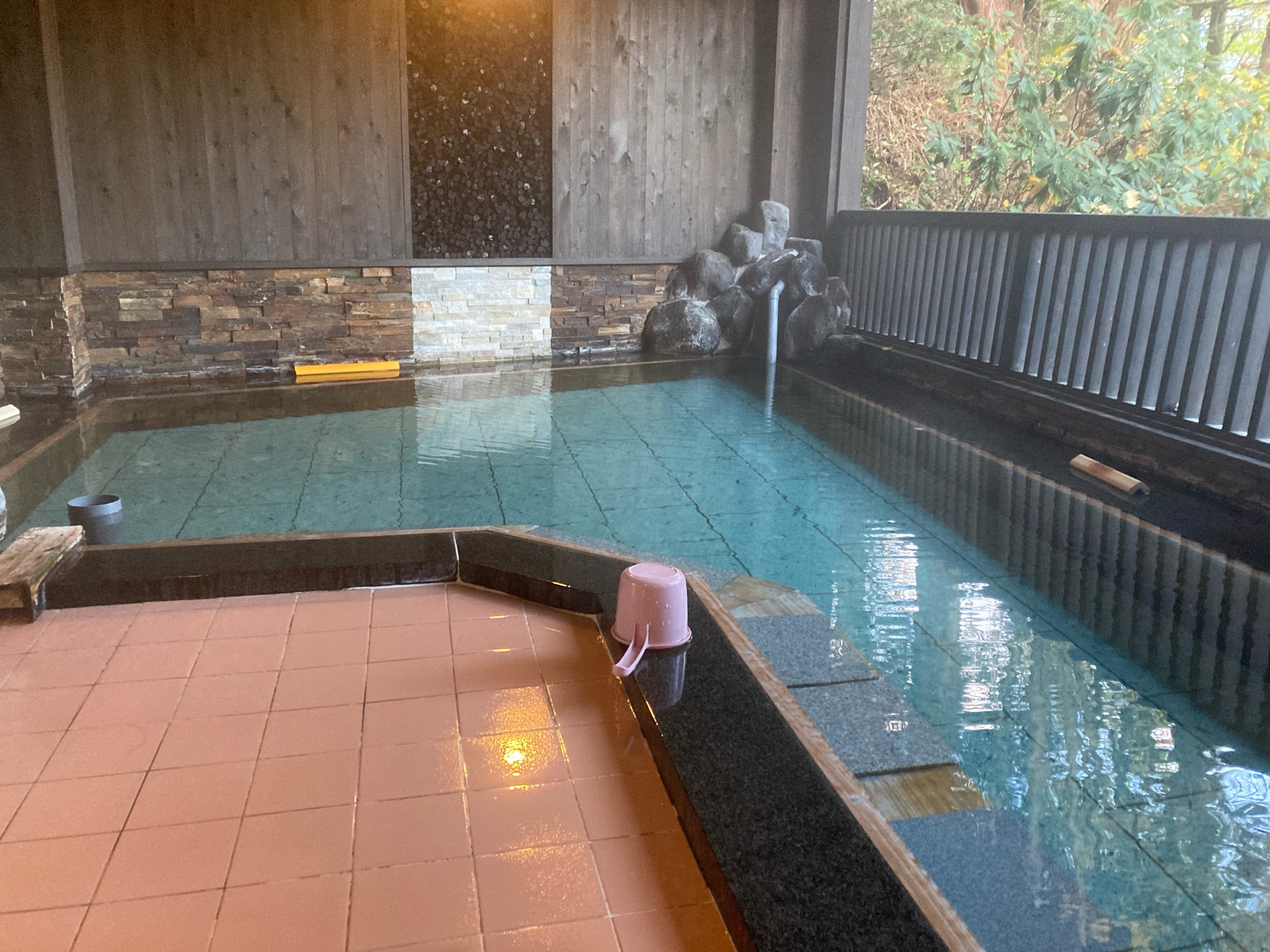 ここの温泉は泉温が低く、私好みのぬる湯である。じっくり浸かってあがり湯で仕上げ。