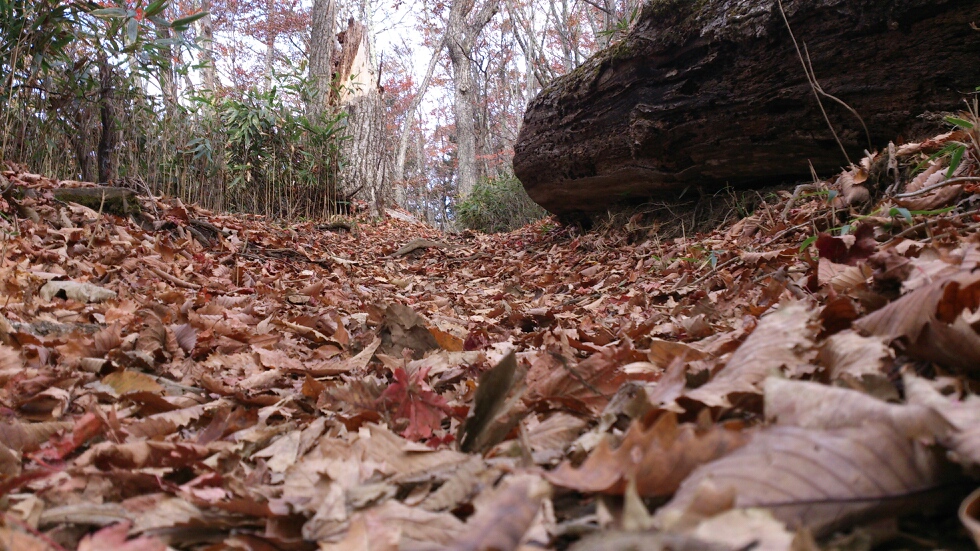 初めは緩やかな道からスタート。落ち葉の絨毯の上を行くサクサクとした感触が心地よいです。