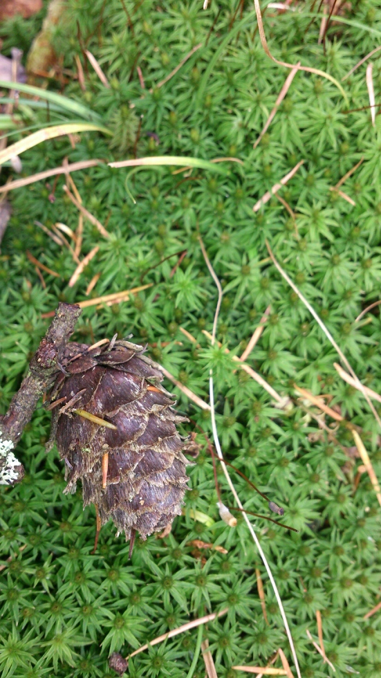 苔です。コケ、大好きです。癒されます。今日は特別にマツボックリをトッピングしてみました。