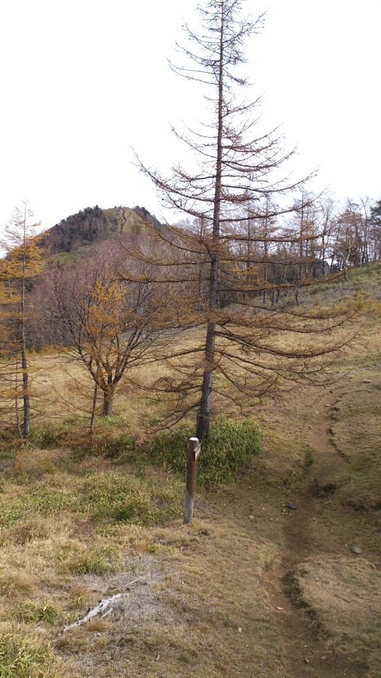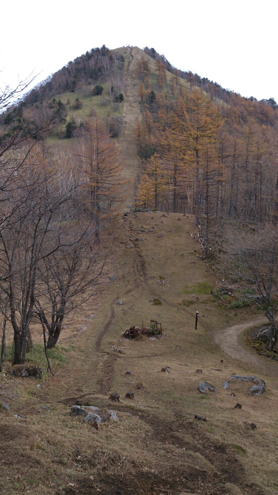 ジャーン!! 笠取山がお出ましです。目の前に立ちはだかる様は、まるでスキー場のスロープです。ここからだと標高差にして120mくらいでしょうか。気合いを入れてノンストップ一気で登ってやろうとしましたが、途中で1度足を止めてしまいました。