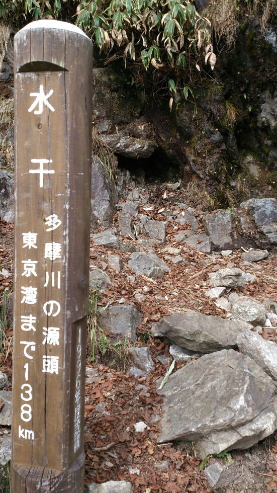 東峰を先に下ると水干という所にでます。ここは多摩川の源流になります。138km頑張って行ってらっしゃい。