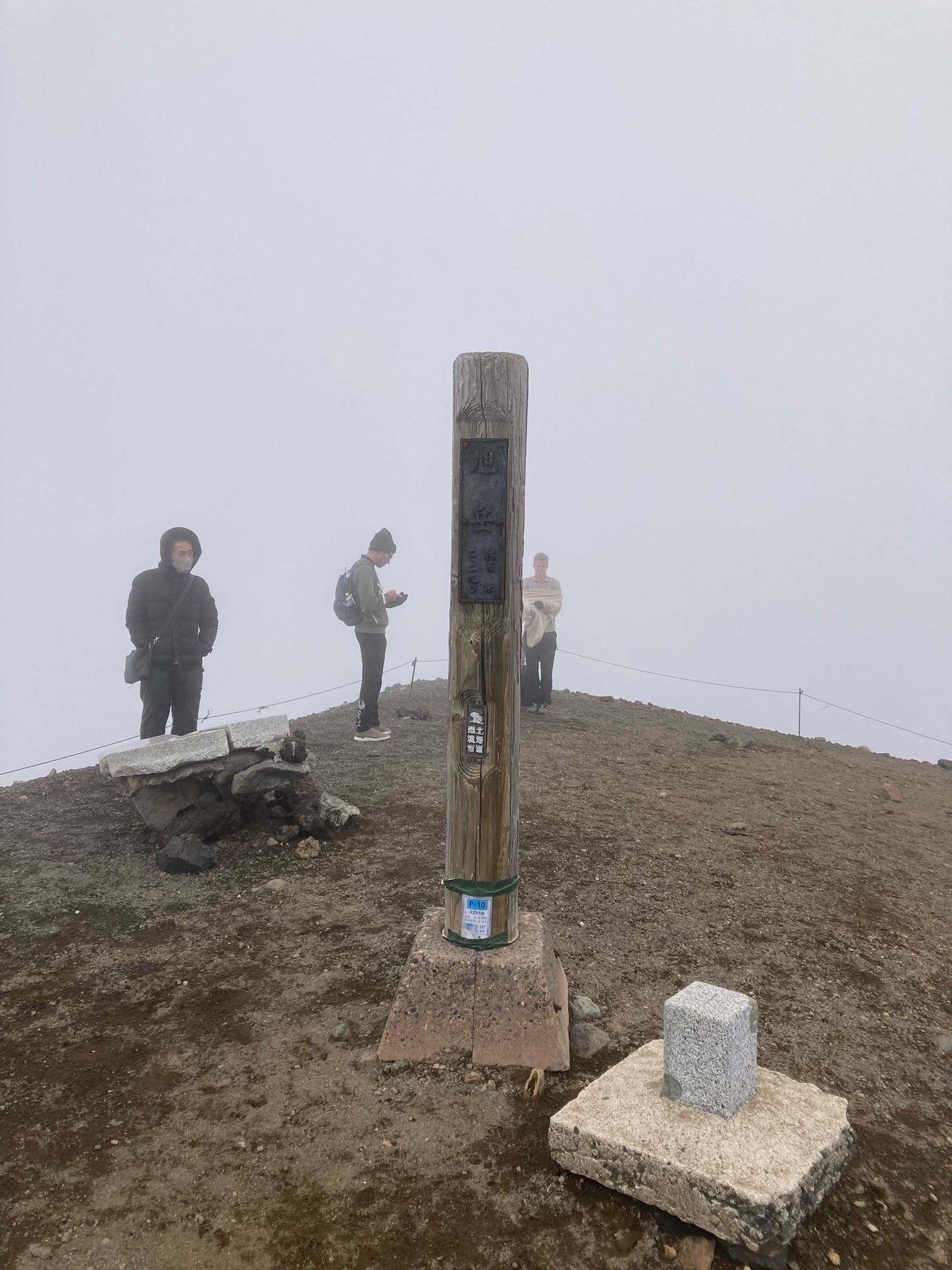 2時間弱で旭岳に到着。視界なし。残念っ。寒い。