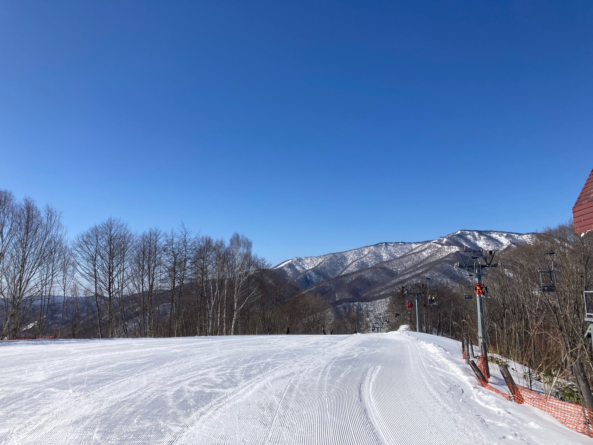昨日に続いて今日も最高な天気。硬めのバーンなので慎重に。