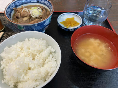 昼メシはいつもの谷川岳名物モツ煮を定食で。