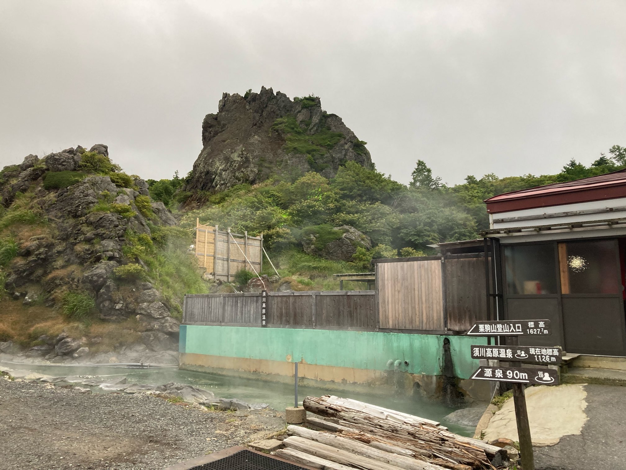 源泉噴気と大日岩