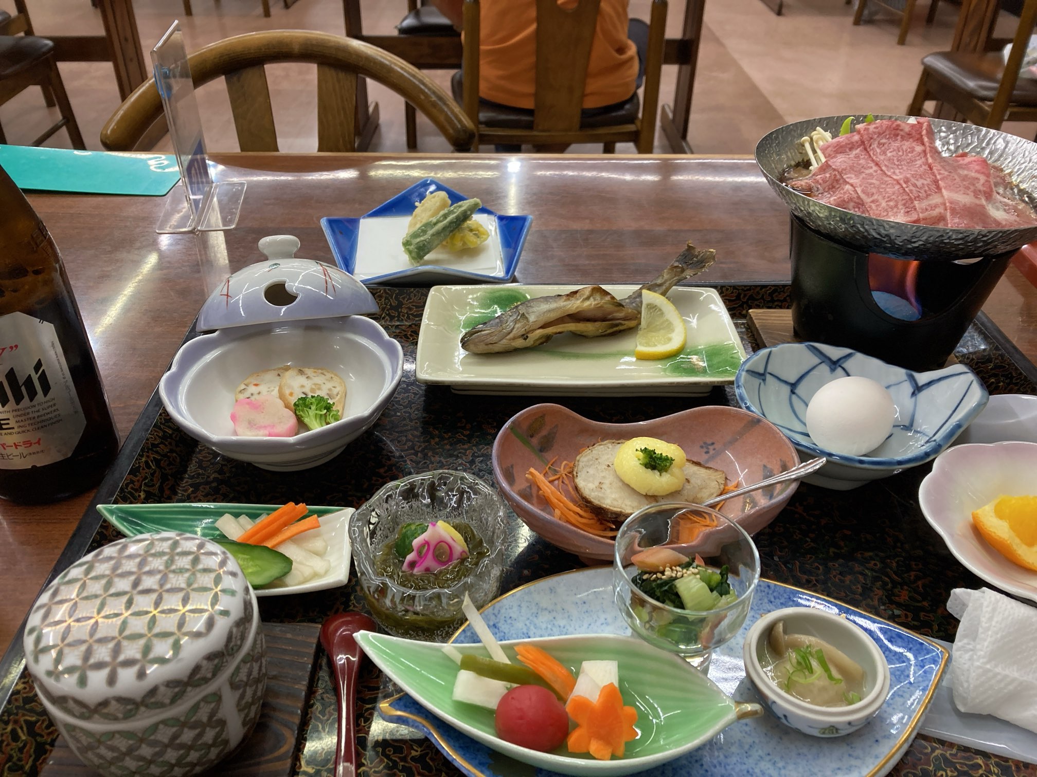 普通の飯だが、何気に前沢牛のすき焼きが美味かった。