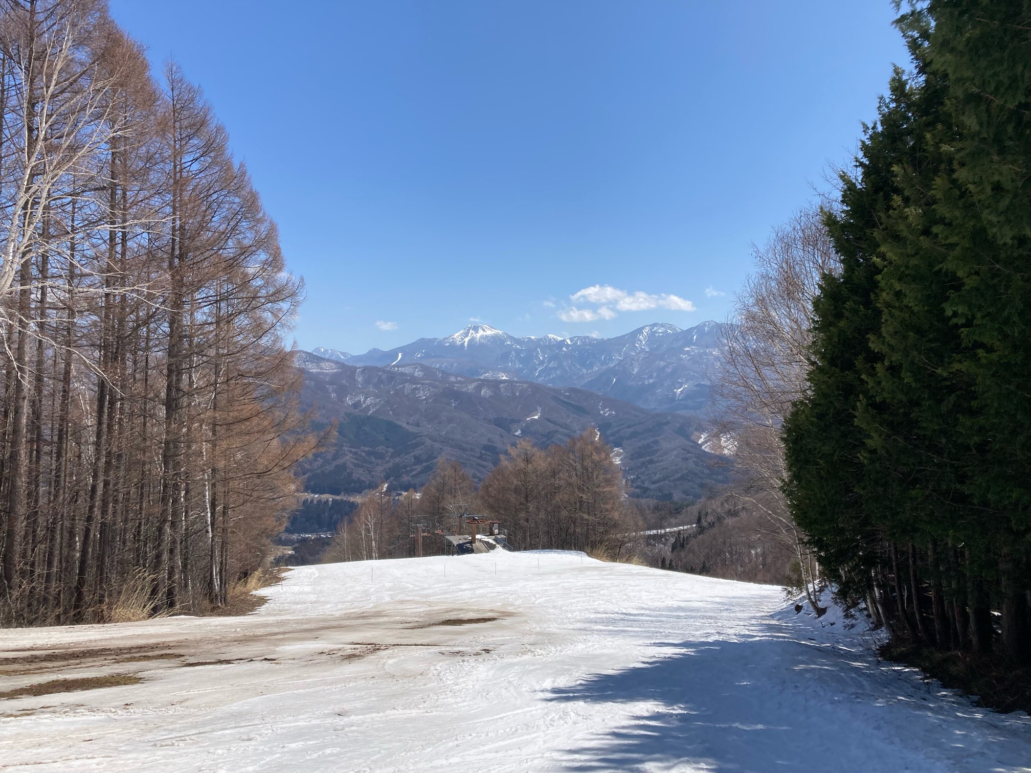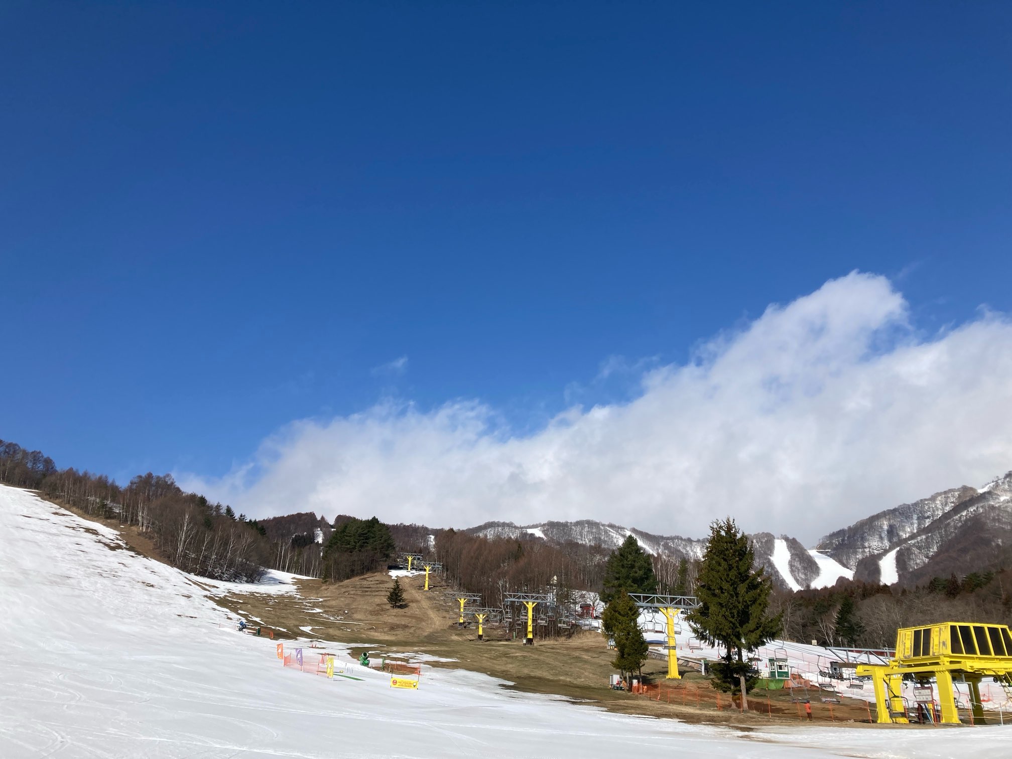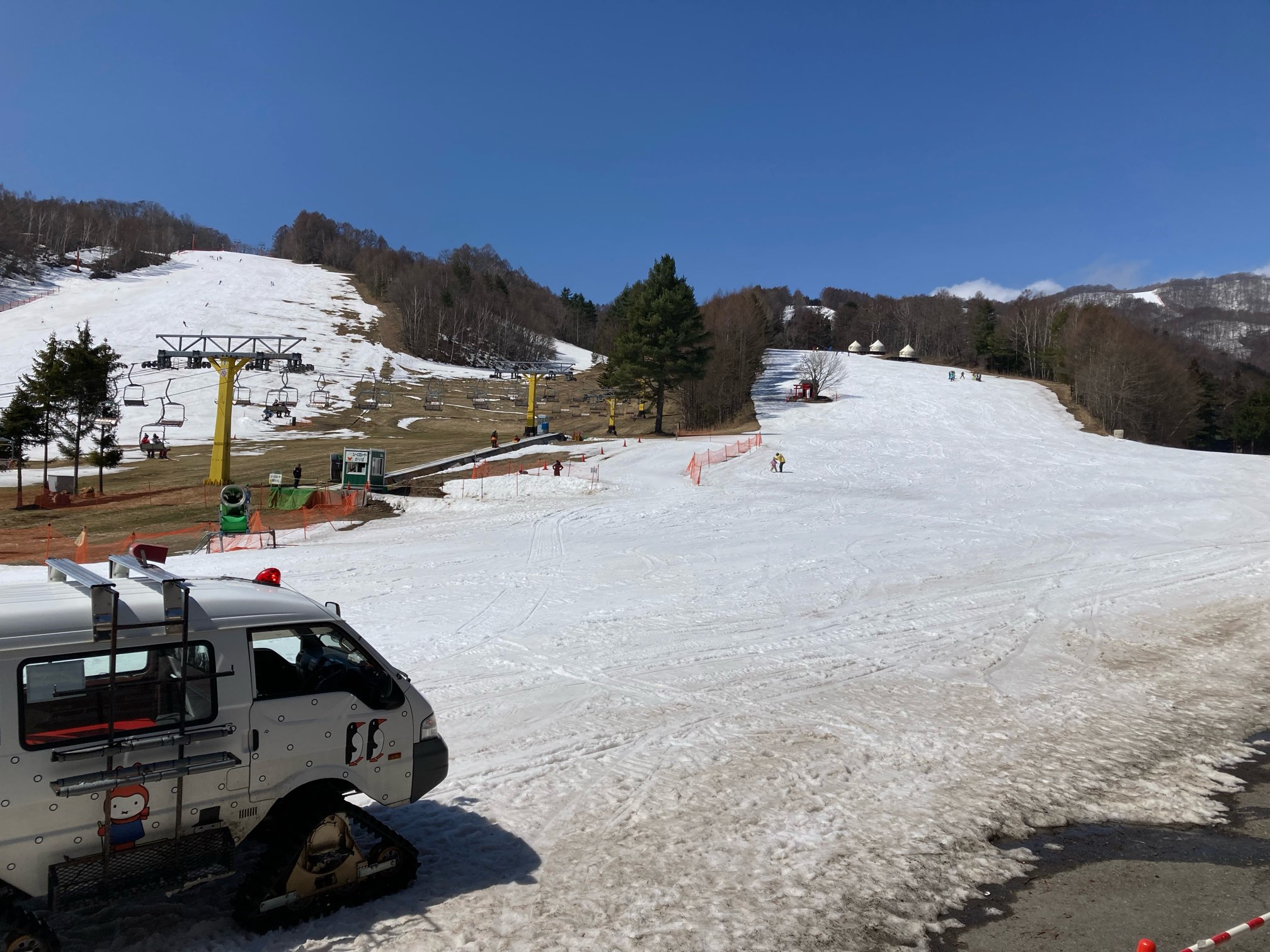 やって来たのは尾瀬のかたしな高原。今月いっぱいでクローズするスキー場が多く、ここかたしな高原も今日が最終日だそう。