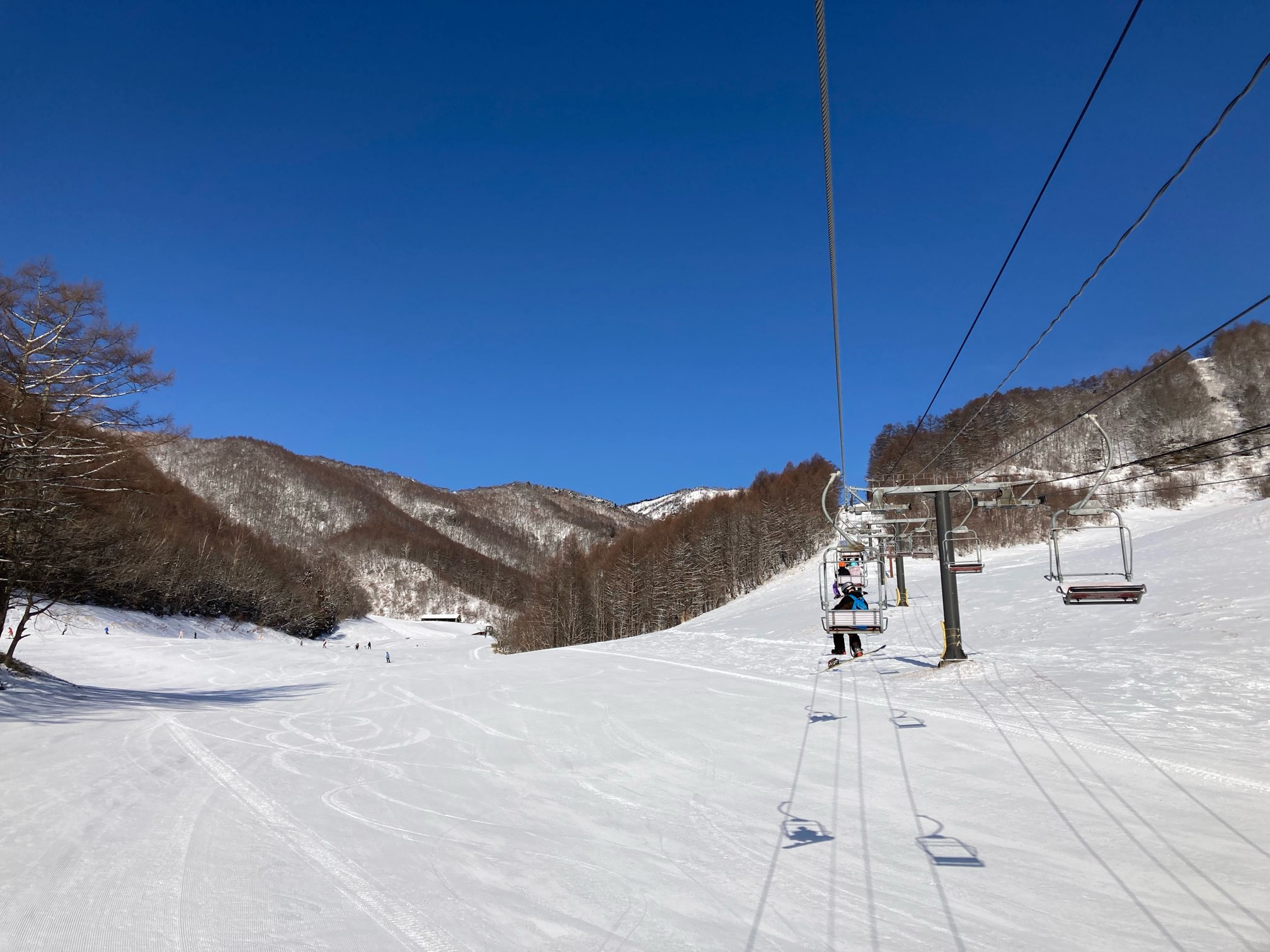 ご覧のとおり超ドピーカンのスーパー快晴で、これ以上ないスキー日和。