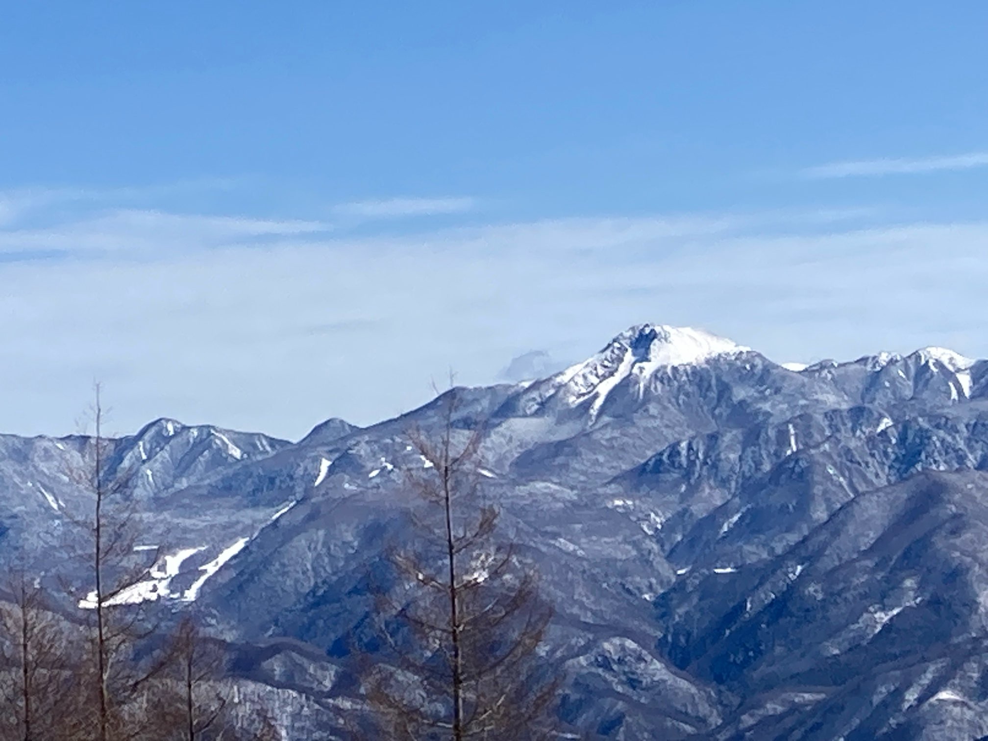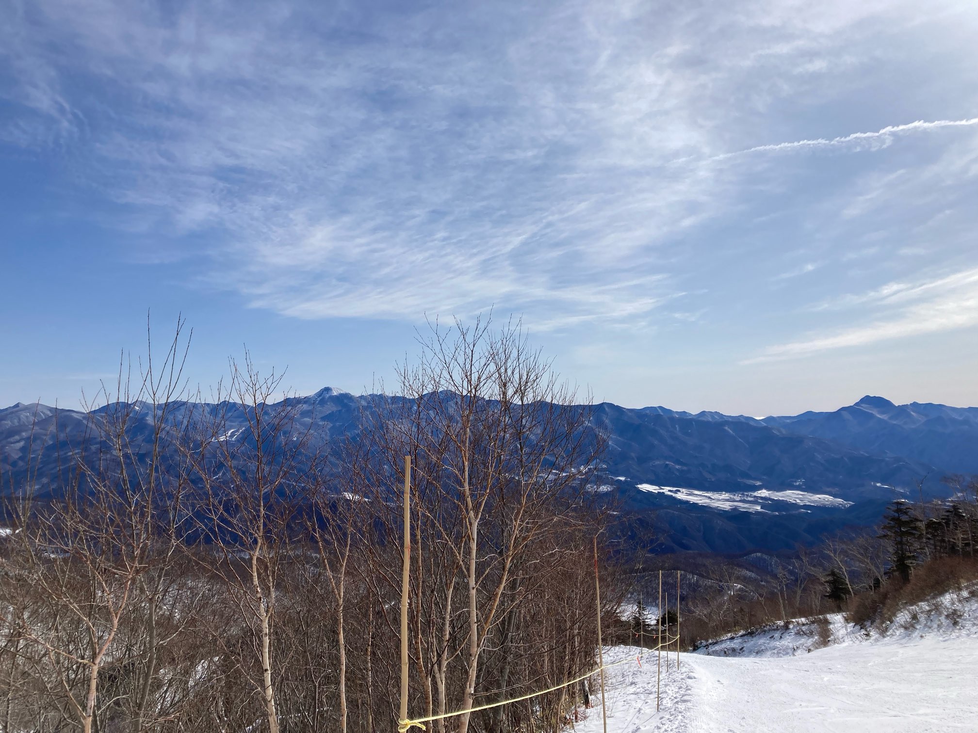 スキー場トップからの眺め。絶景なり。錫ケ岳から日光白根山の山並み。
