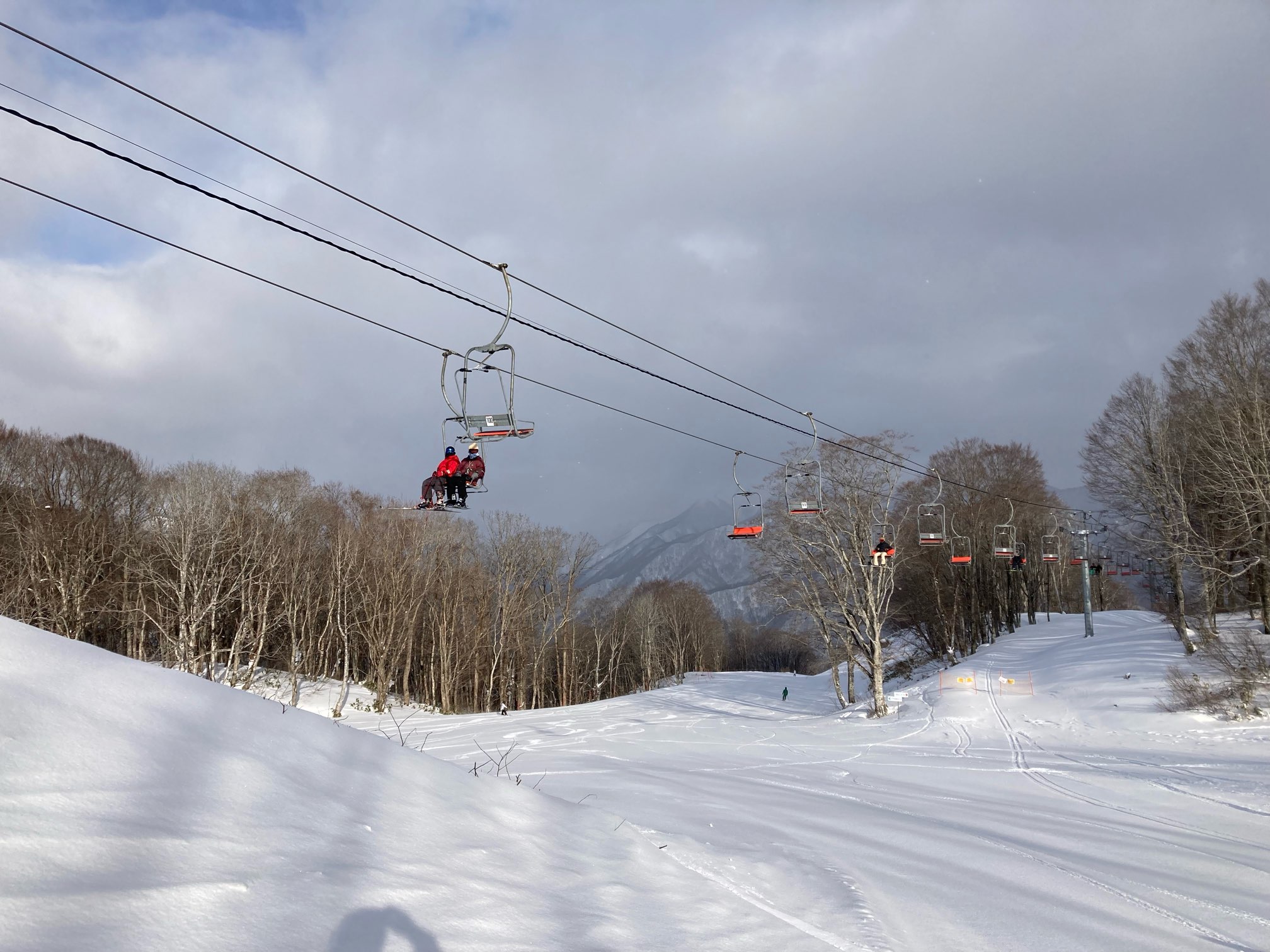暖冬のせいか確かに雪は少ないが、前日まで降っていたようでバーンコンディションは良い。いや、今までで一番のような。