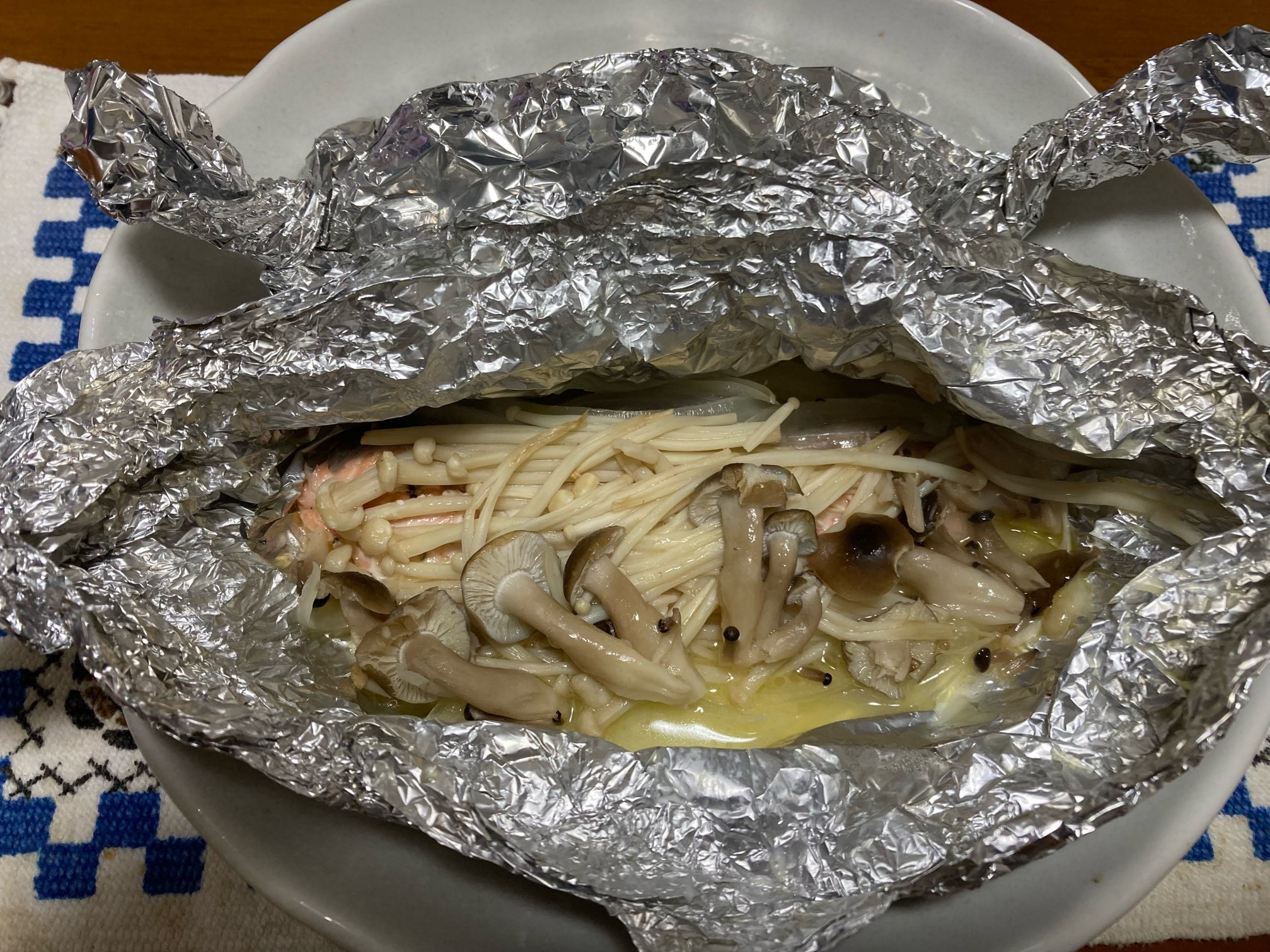久しぶりに鮭のホイル焼きを作ってみた。バターを効かせて、たっぷりキノコで。