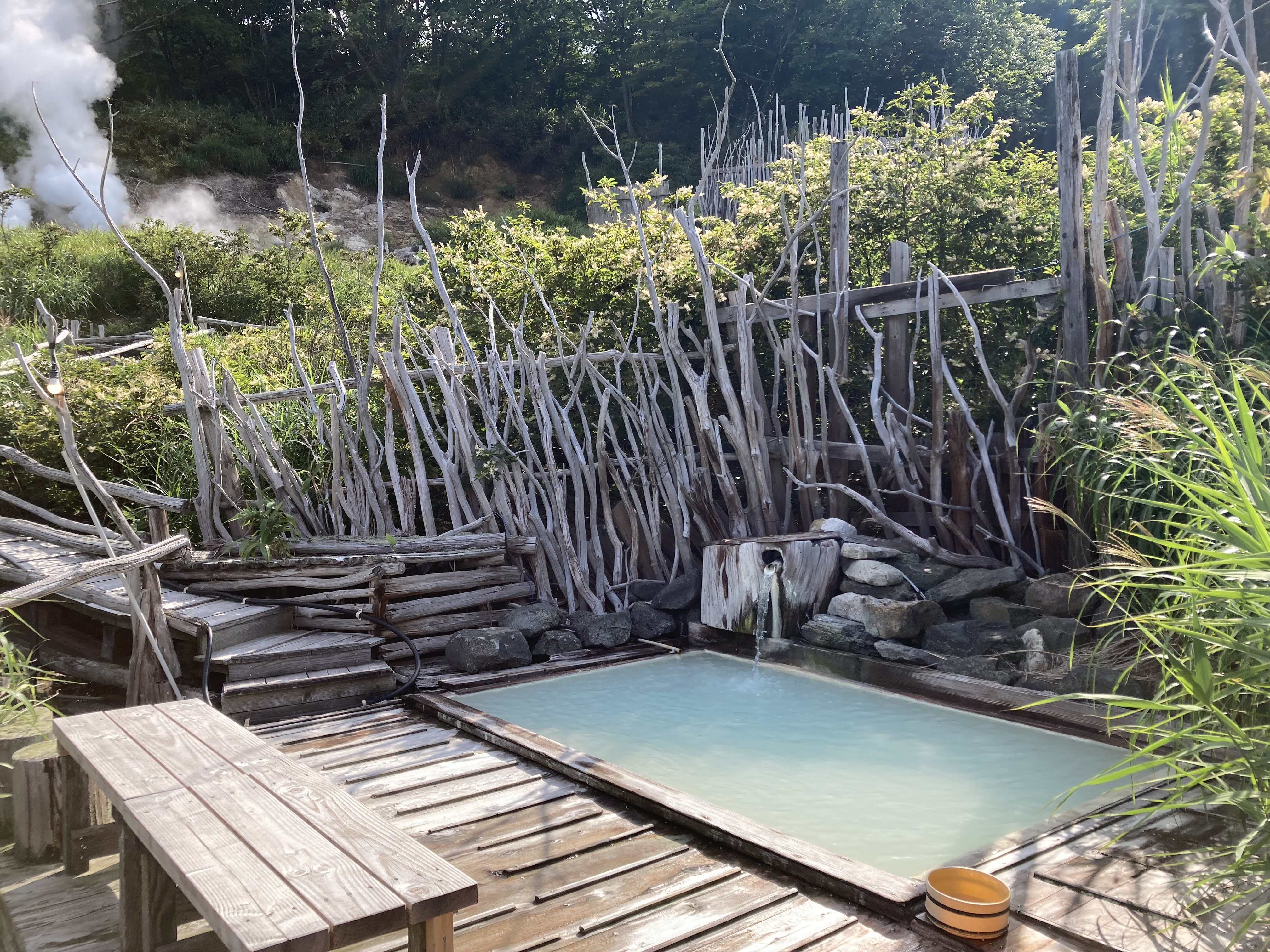 さっそく一発目の温泉へドボンッ。高原の風は爽やかである。最高。