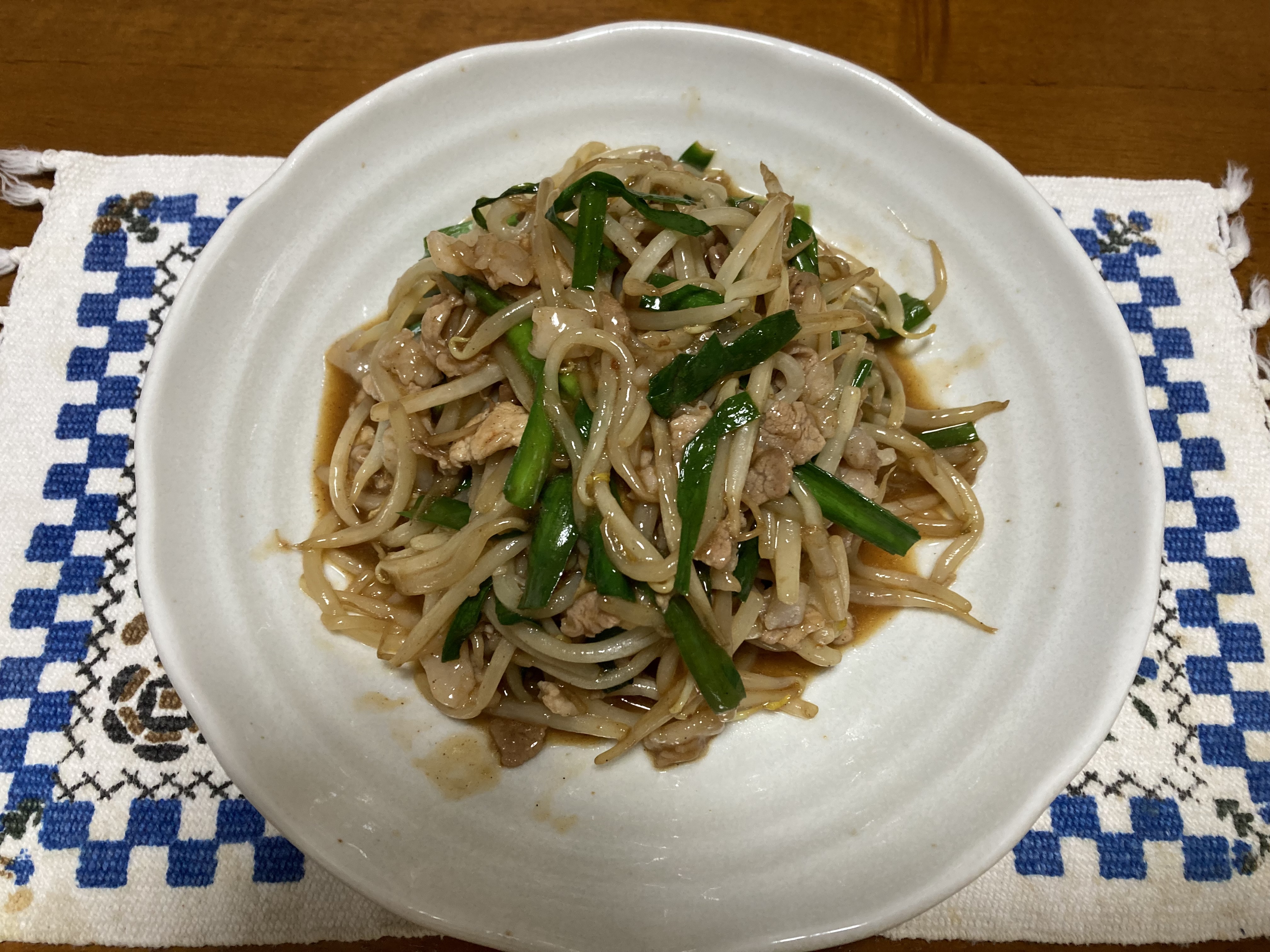 豚肉とニラもやしの炒め物を作った。