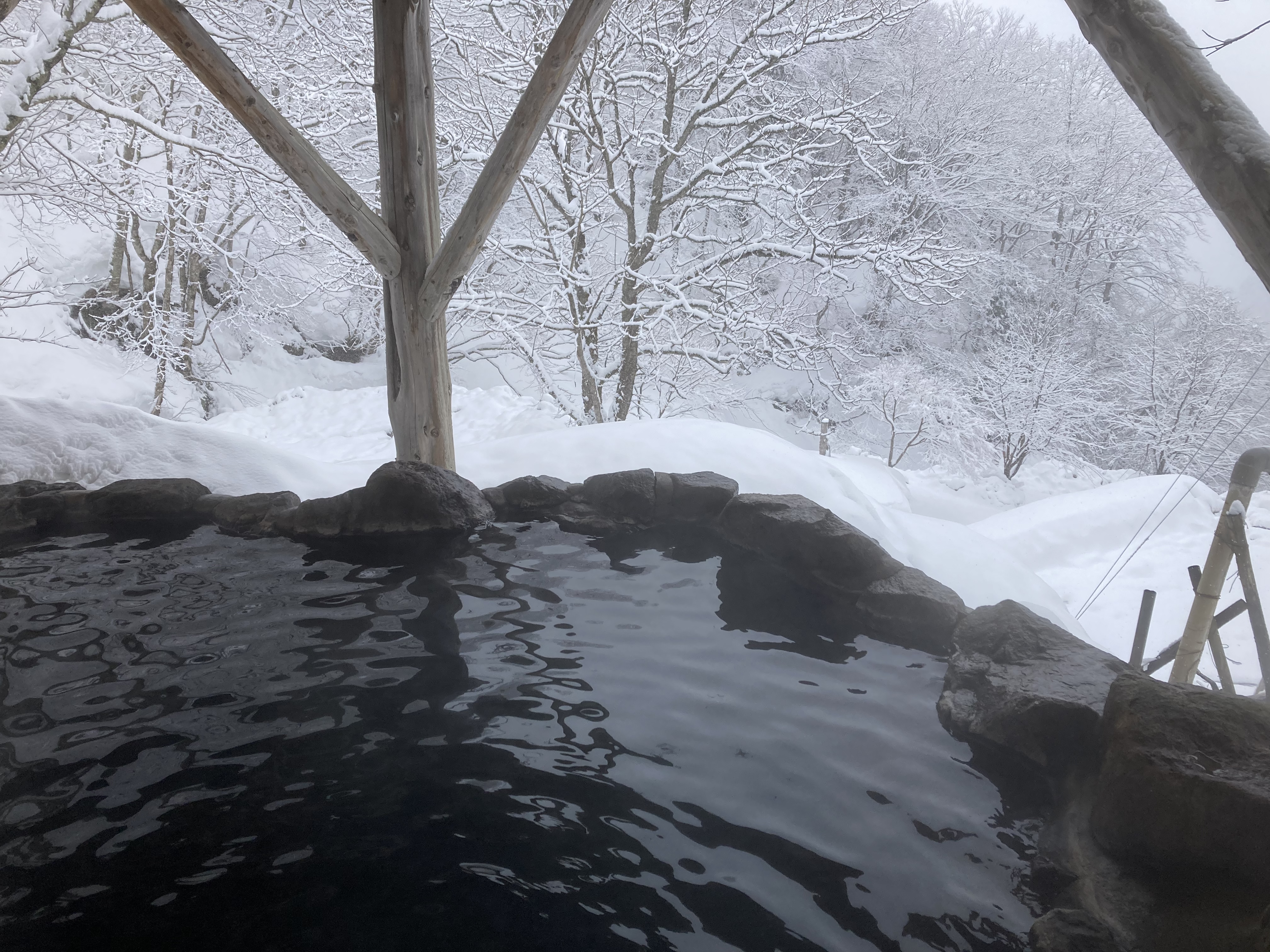 露天風呂で朝飯までのんびり湯につかる。