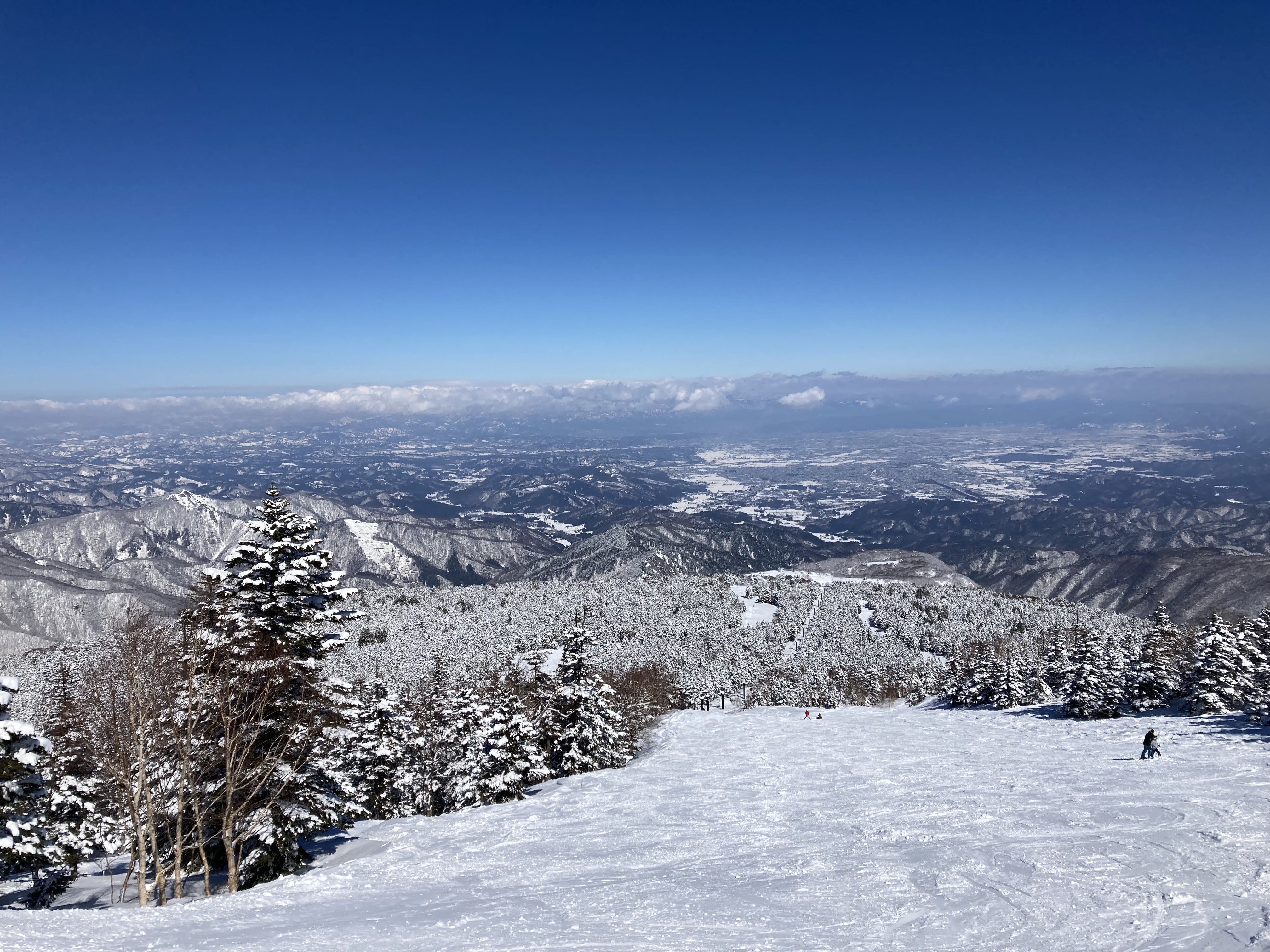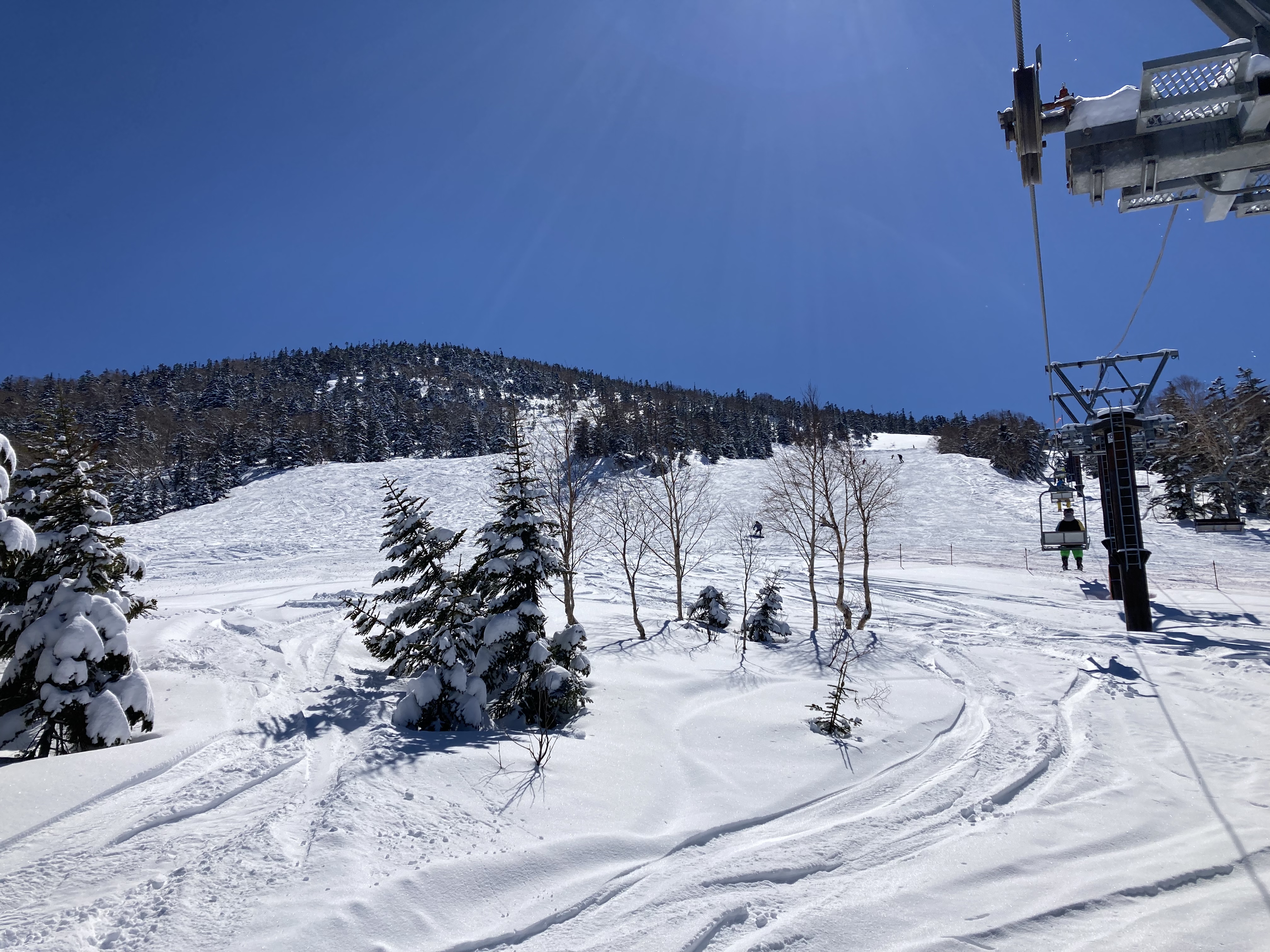 雲ひとつない最高の天気。おまけに昨日の雪によりゲレンデのコンディションもバッチリである。この時期にしては十分過ぎる。