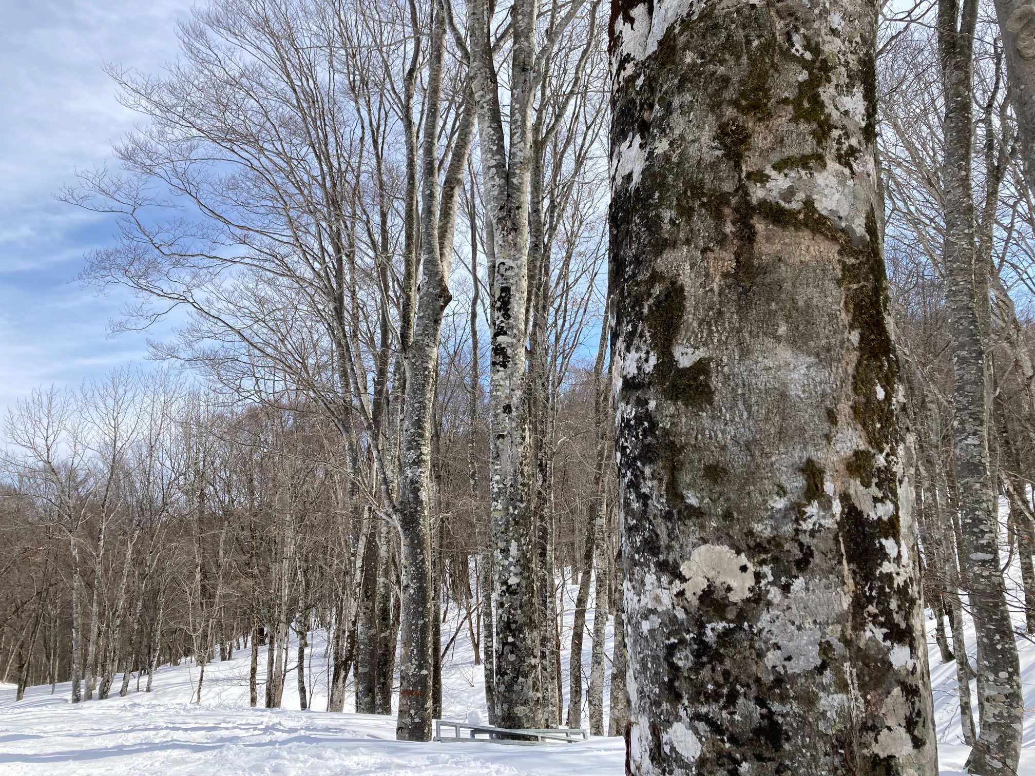 トップに上がれば一帯は素敵なブナの林。滑らずにずっと居たい雰囲気の良さ。