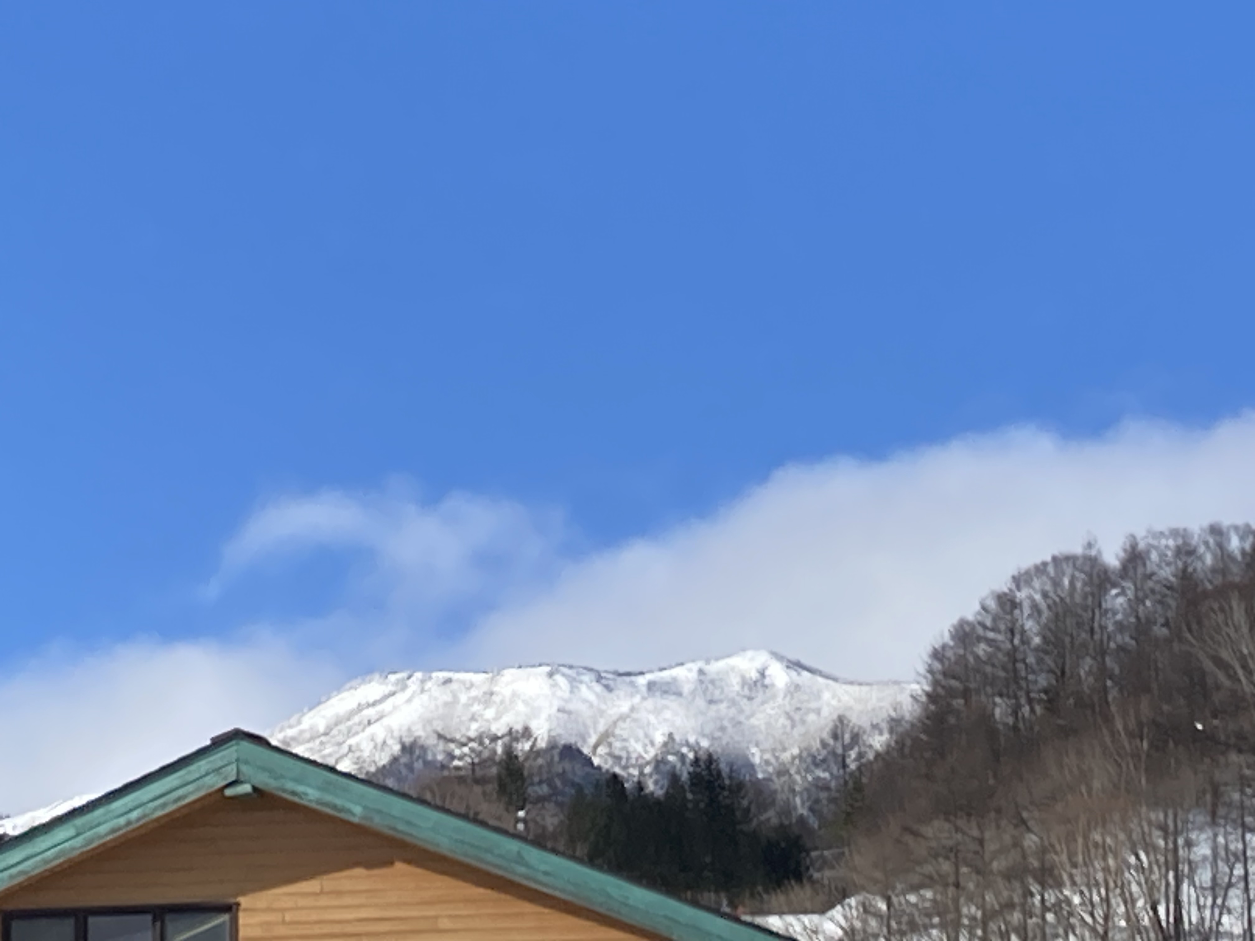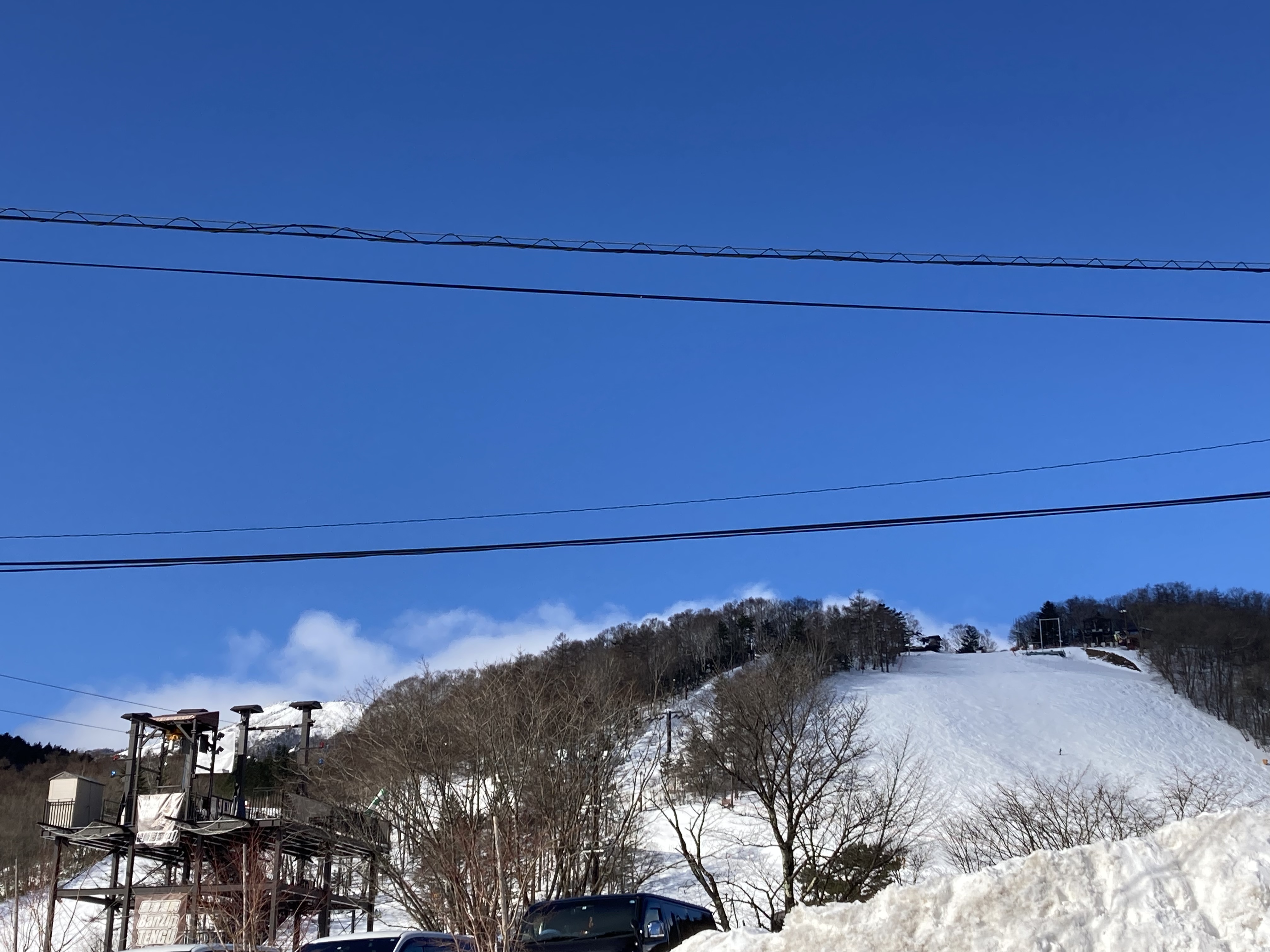 天狗山ゲレンデと白根山がクッキリと青空に映えている。