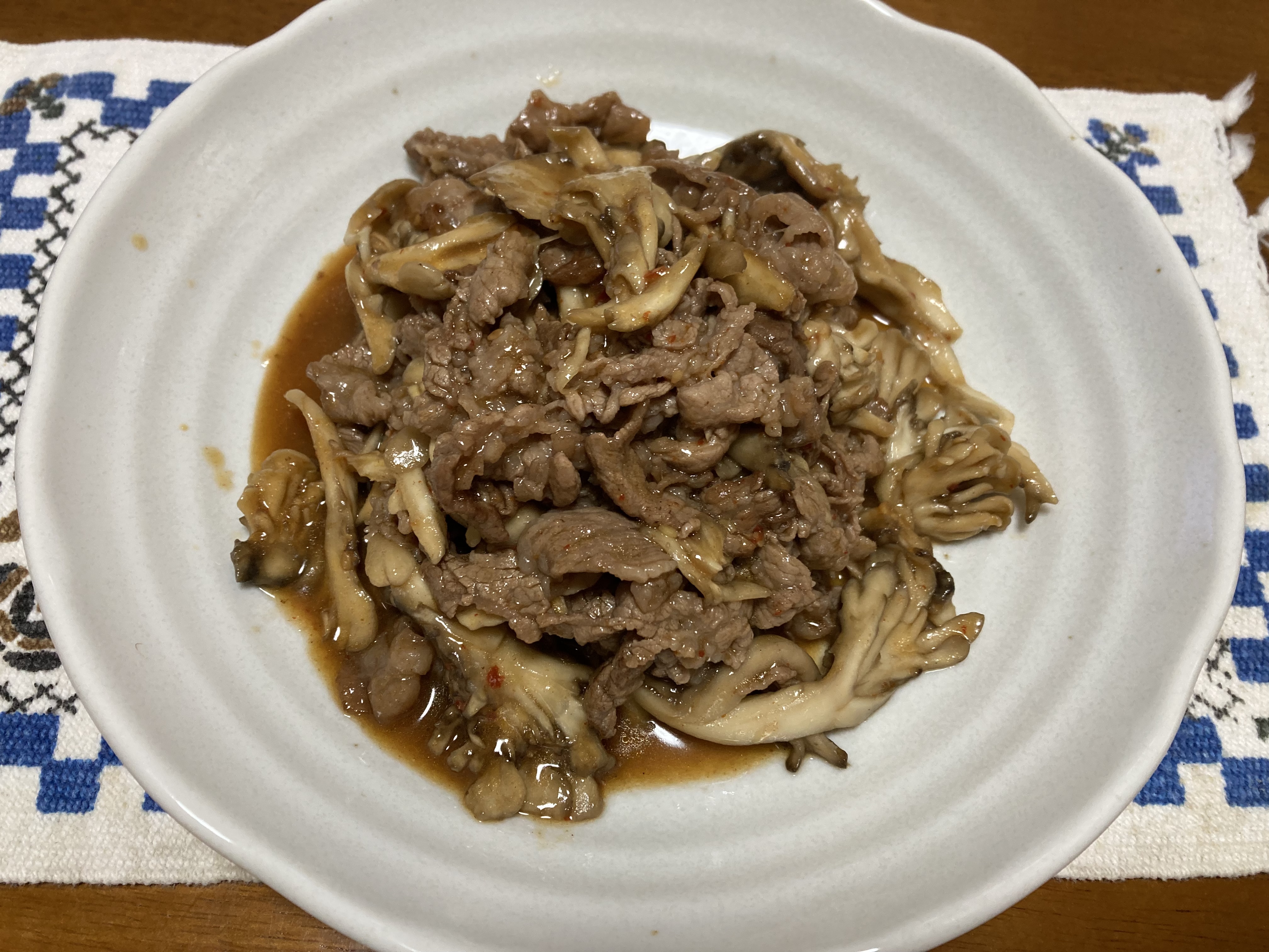 牛肉と舞茸の甘辛炒めを作ってみた。