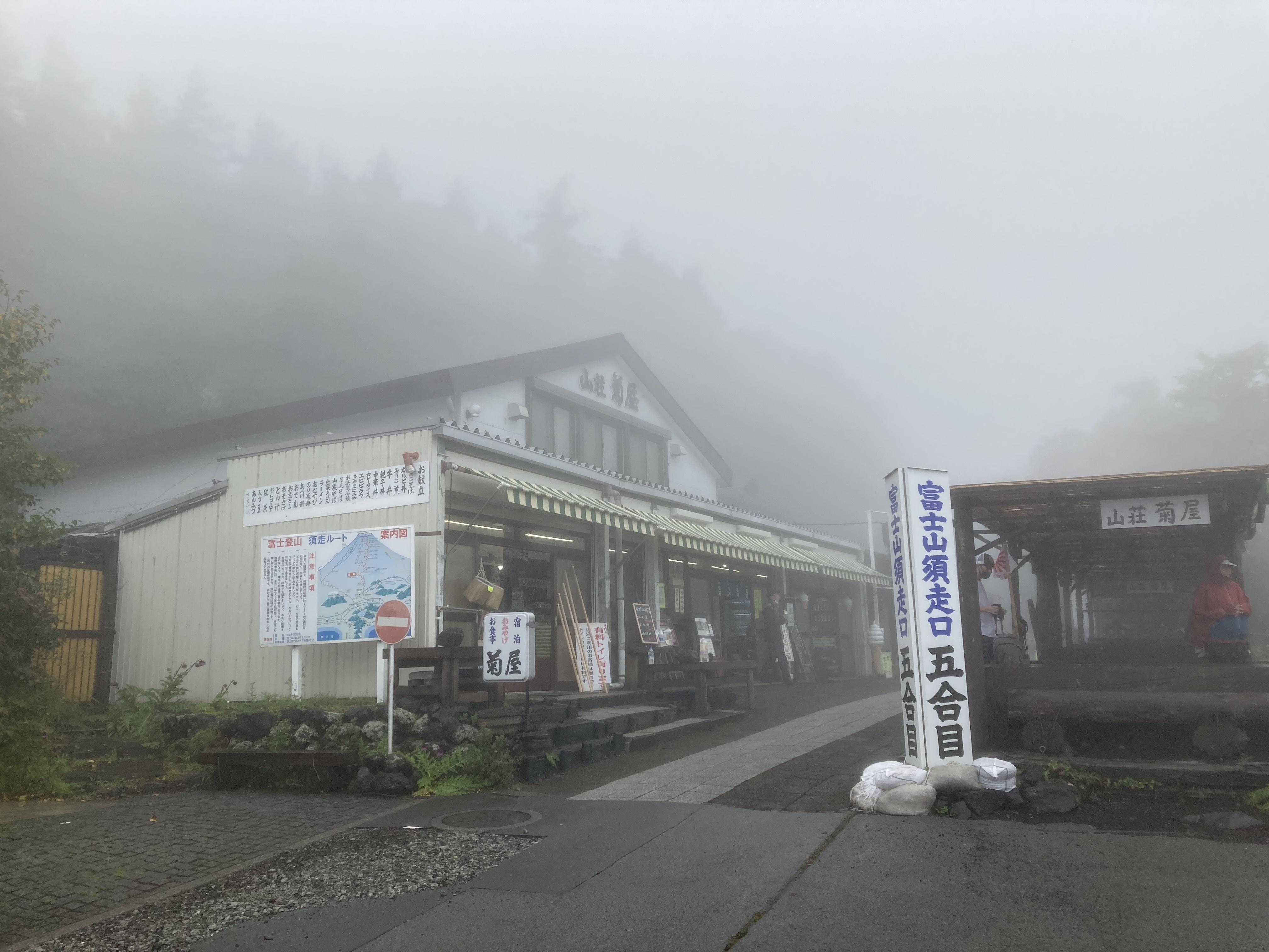 こんな霧雨のなか、登山口にはたくさんの登山者で溢れていた。半数以上は海外の人だ。