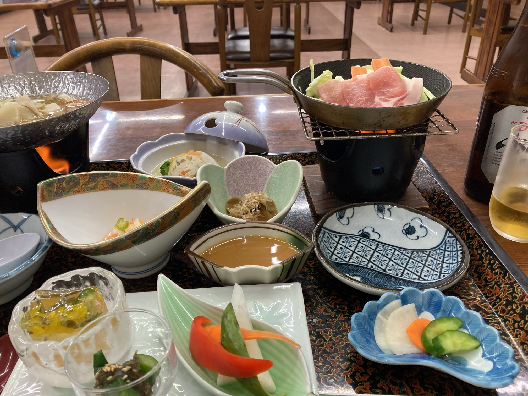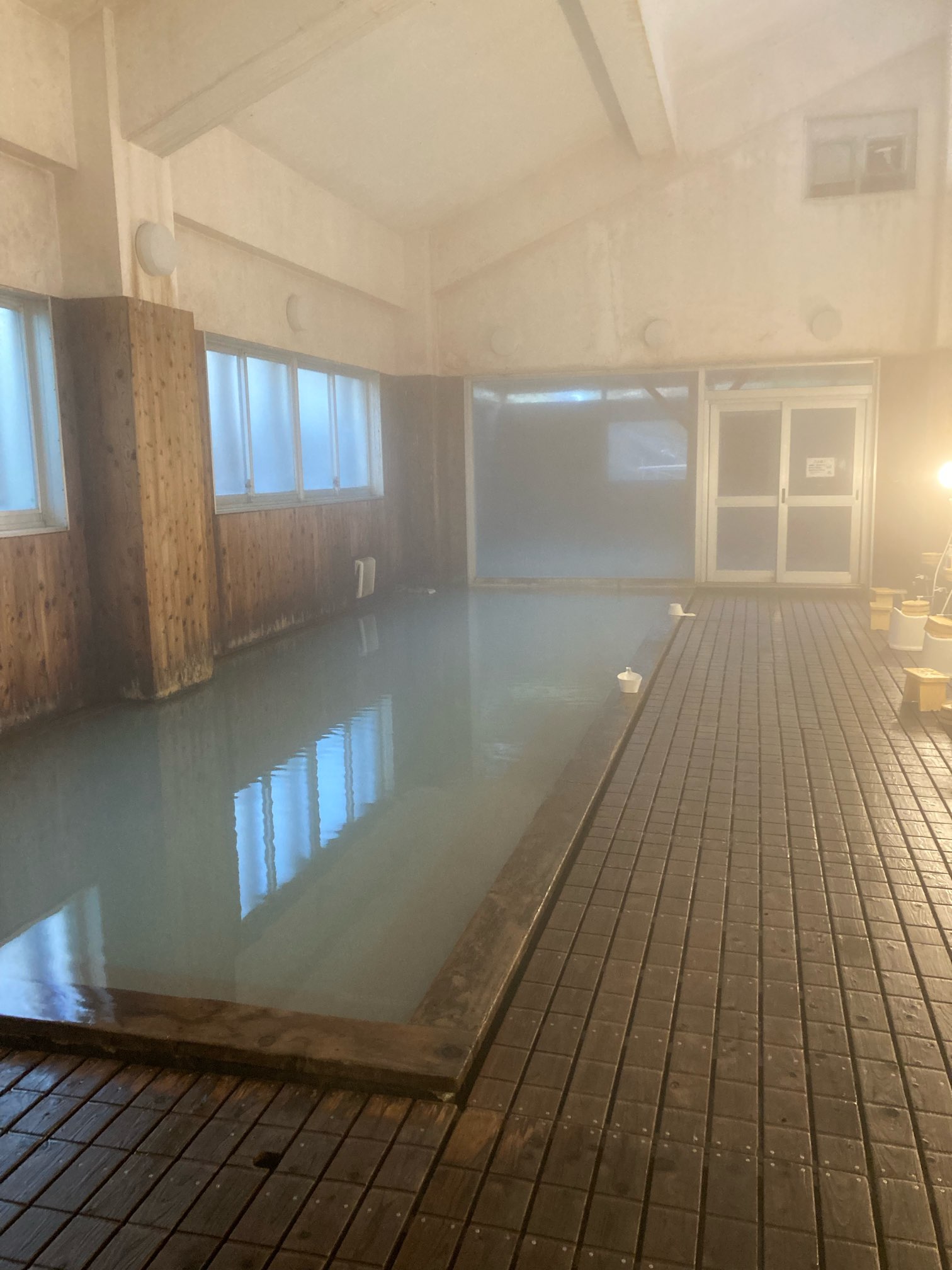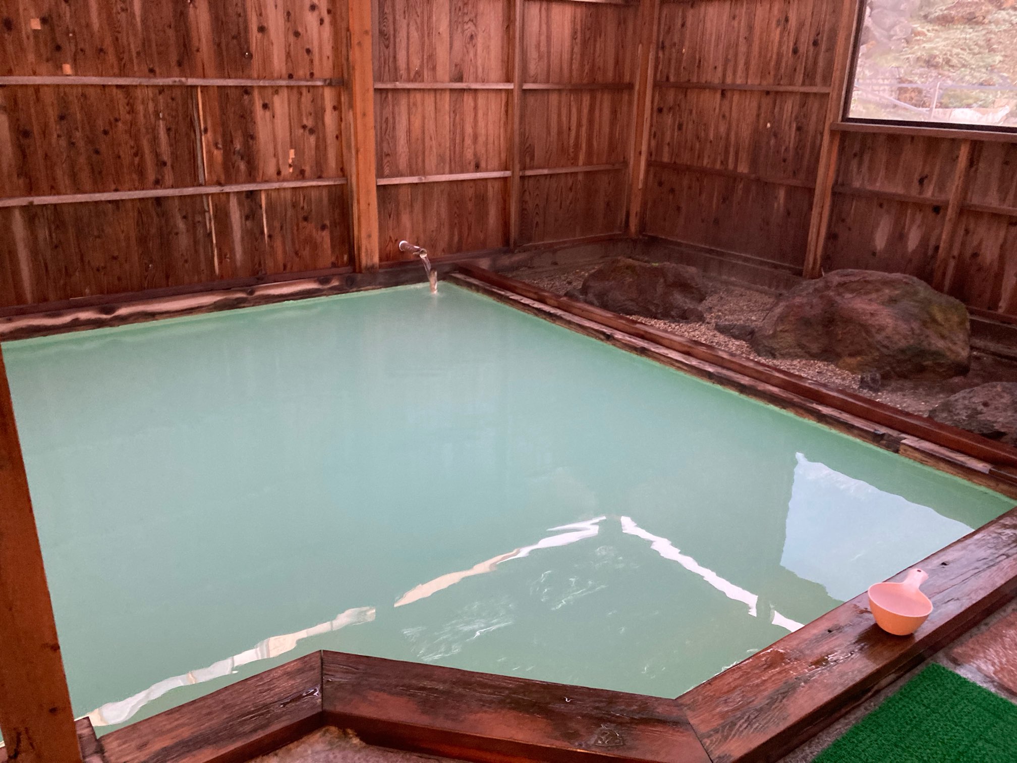 2日目はあまり天気が良くない。起床するといつものように朝飯前のひとっ風呂で露天風呂へ。