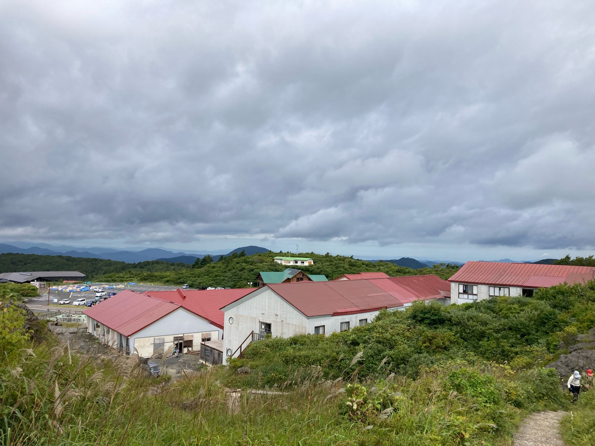 温泉神社の上を行くと栗駒山へ至る。ほんの少しだけ登ったところから宿を眺める。