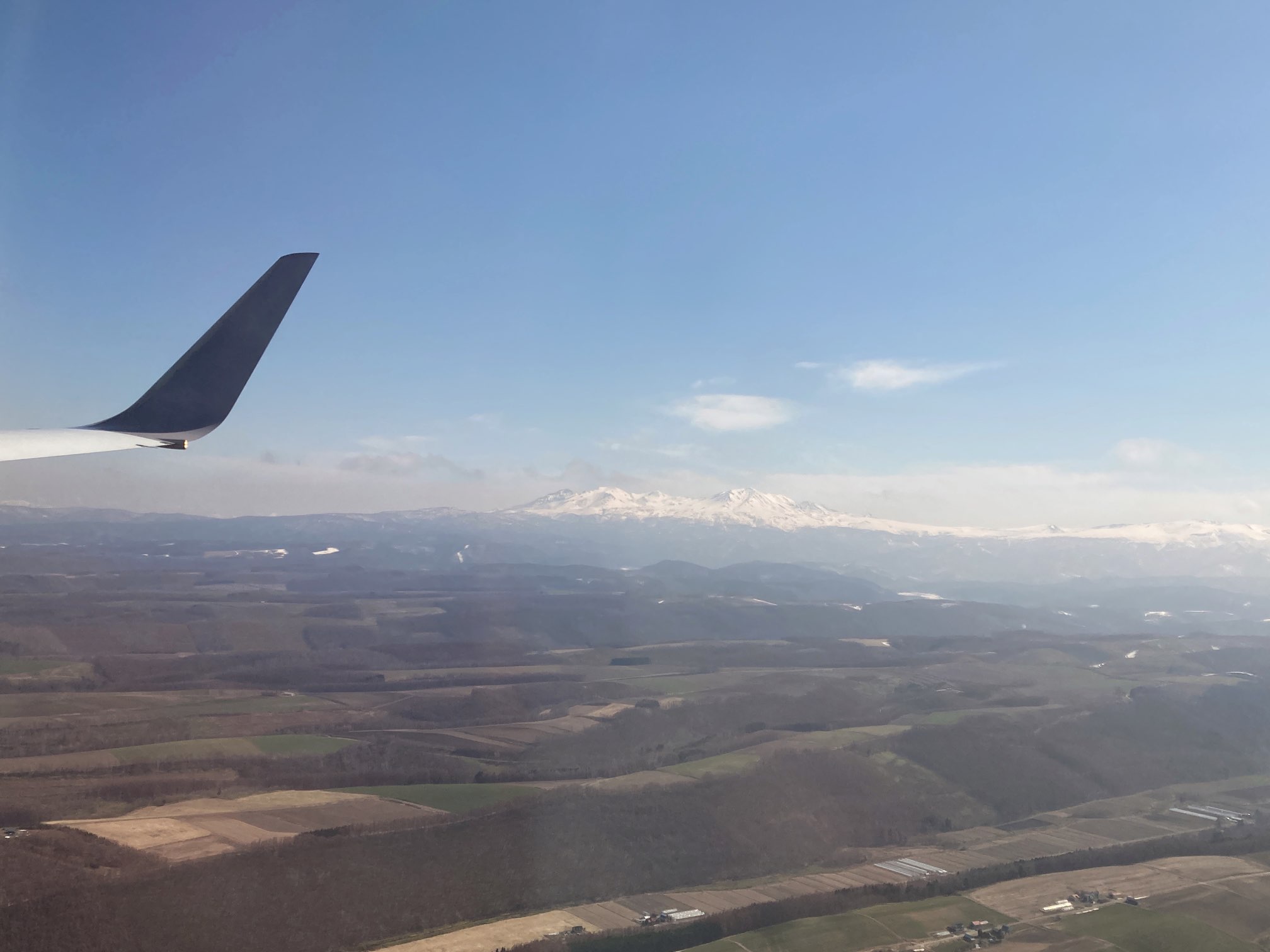 まもなく旭川空港。機内からの大雪山。待ってろよ。