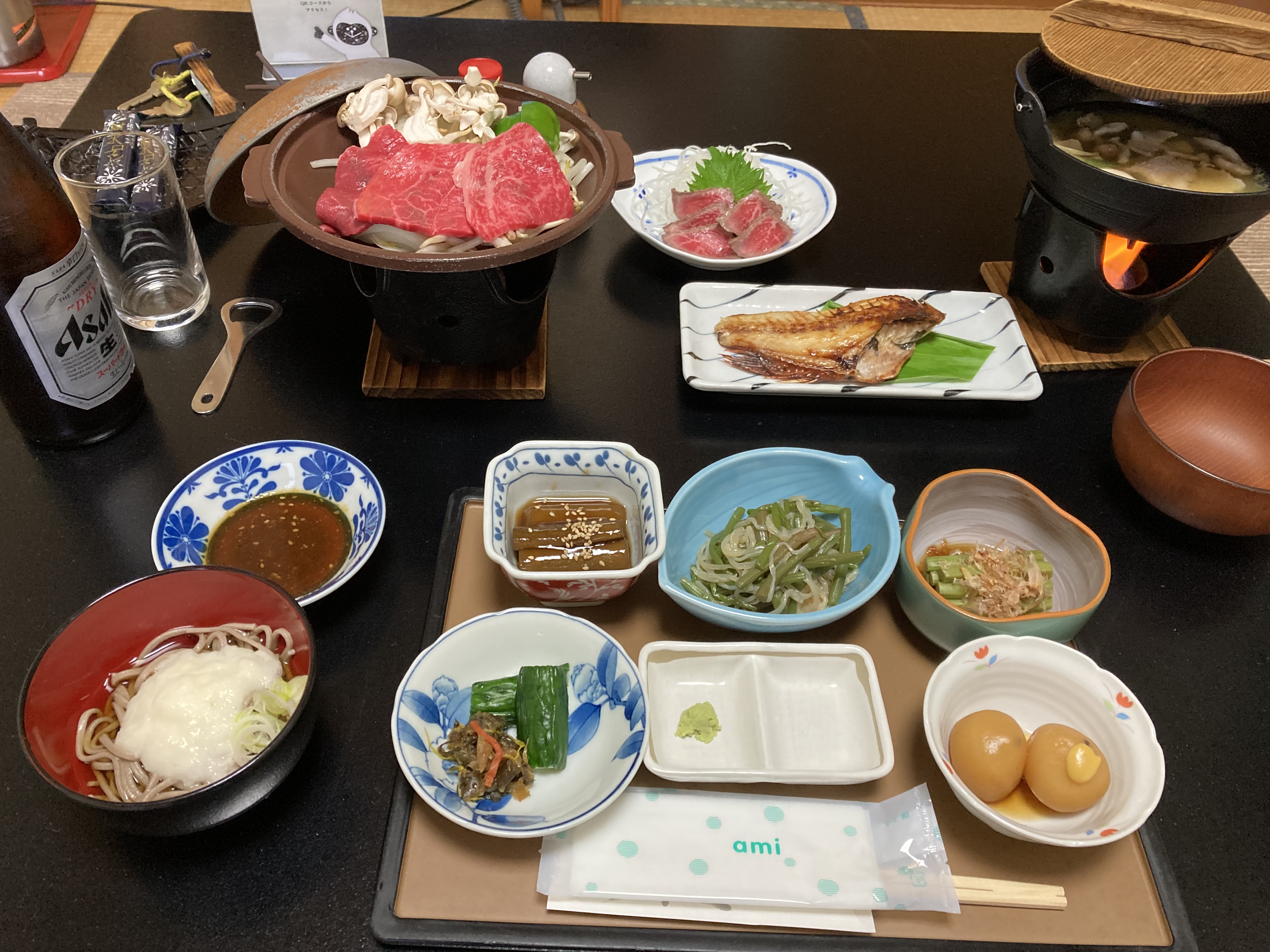 部屋に戻ってまったりしていると夕飯。いつもと同じだが、美味しく頂きました。腹一杯。