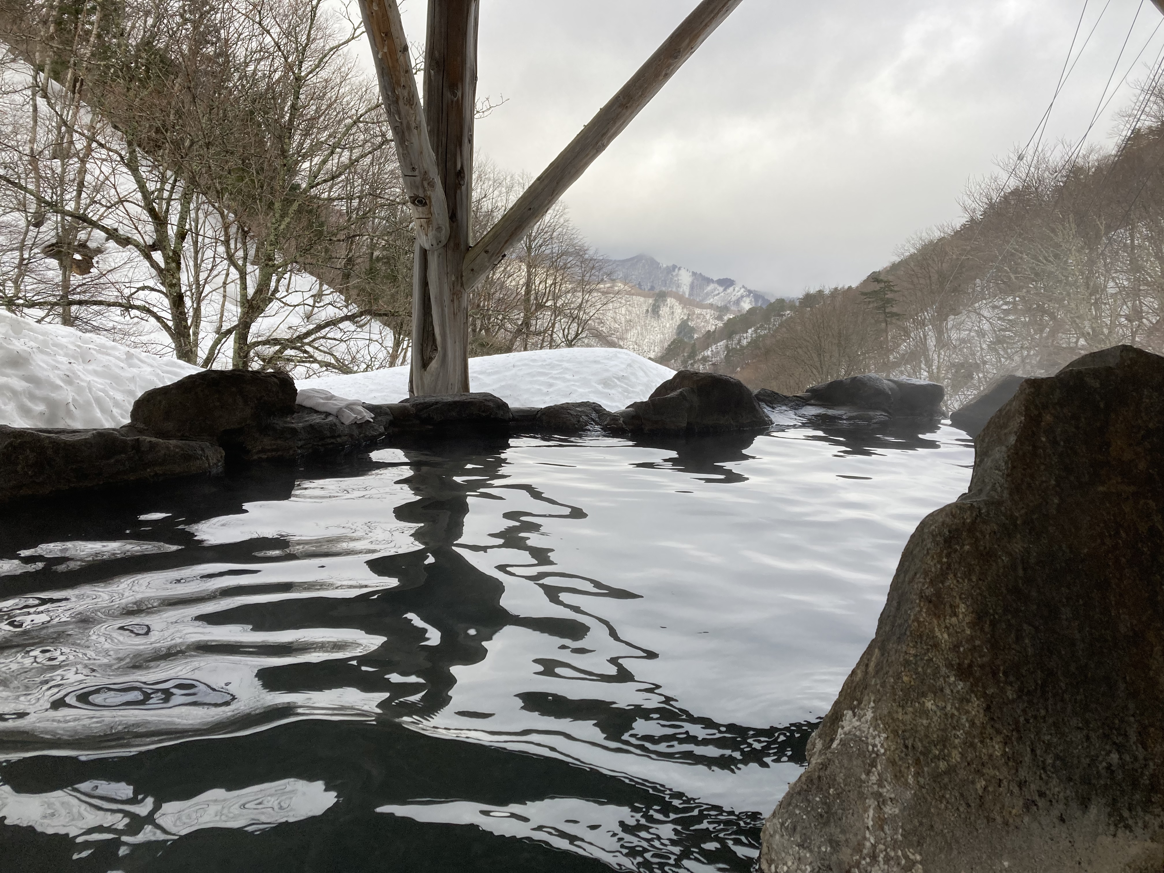 快適な湯温でいつまでも入っていられるが、風がビュービュー凄い勢いで吹いている。