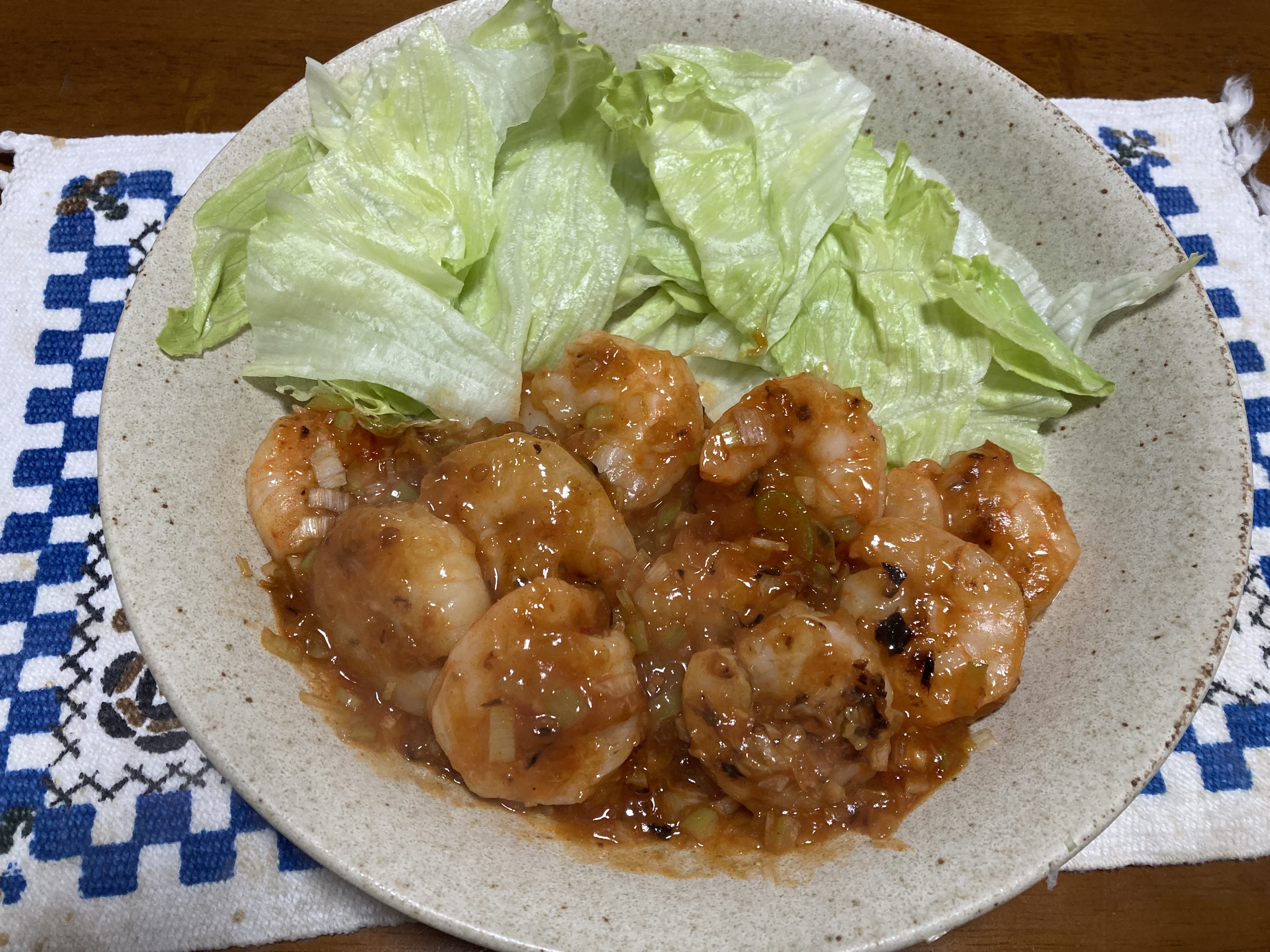 スーパーでお手頃なエビを見つけたので、これでエビチリを作った。